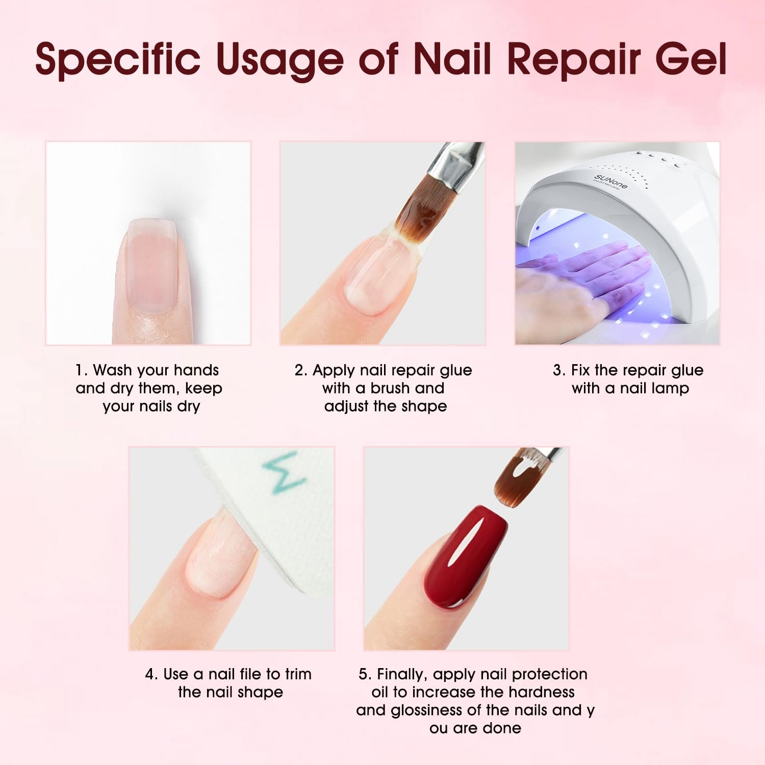 Easy to use: No professional skills or tools are required. Just brush on the gel for a quick and easy repair. Great for natural nails, UV gel nails, etc