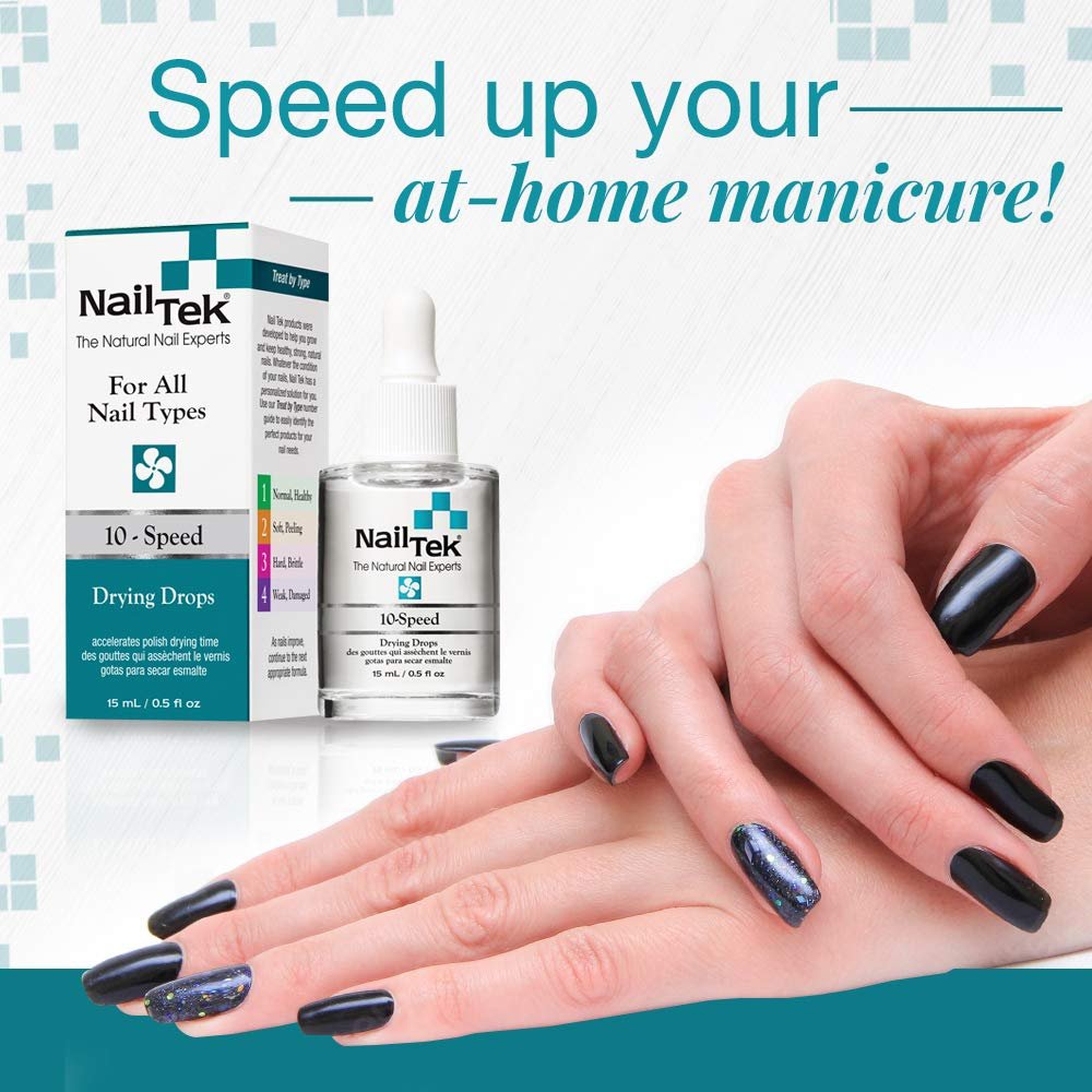 Fastest Way To Dry Polished Nails: Nail Tek 10-Speed thoroughly dries polish to a smooth, hard, and shiny finish in 5 – 7 minutes! It conditions nails without leaving a greasy film. This dries quickly, too for the perfect mani-pedi!