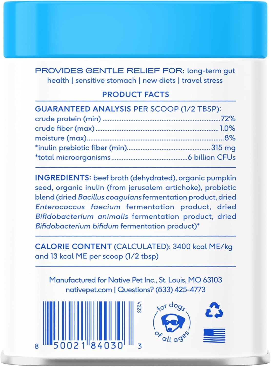 Comprehensive Dog Health: Native Pet’s dog probiotics powder is a top-notch dog supplement enhancing your dog’s digestive and overall health. Ideal for pet owners when stocking up on dog supplies and accessories