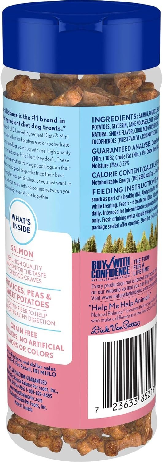 These delicious Mini Rewards turn any time into treat time and help keep training fun. Natural Balance L. I. D. Limited Ingredient Diets Mini Rewards dog treats are designed with a single animal protein source and limited carbohydrate sources, and are a great way to reward and motivate your dog. Natural Balance L. I. D. Limited Ingredient Diets Mini Rewards dog treats are made with salmon for a delicious taste they love and are less than 5 calories per treat.