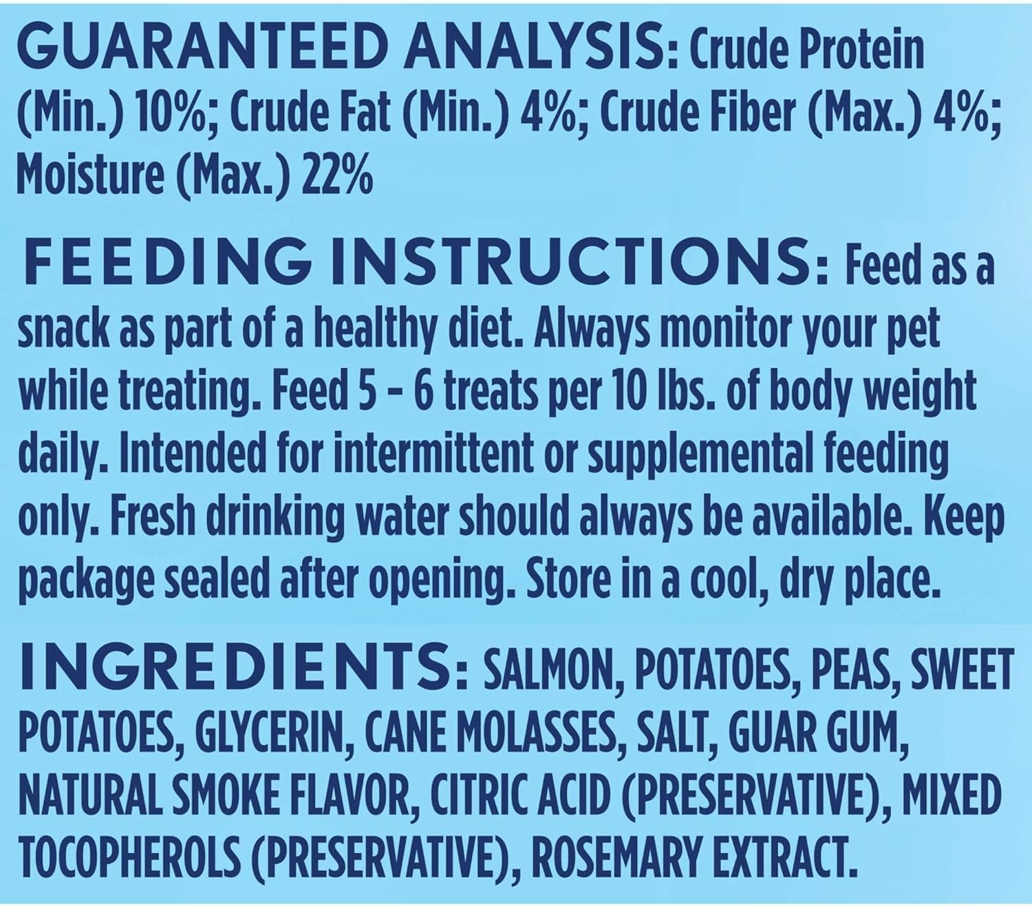 OUR SALMON TREAT RECIPE The Mini Rewards Salmon Recipe is crafted with nutritious ingredients such as salmon and sweet potatoes; Complete and balanced with essential nutrients to help maintain your dog’s healthy immune system. Only 5 calories per treat!