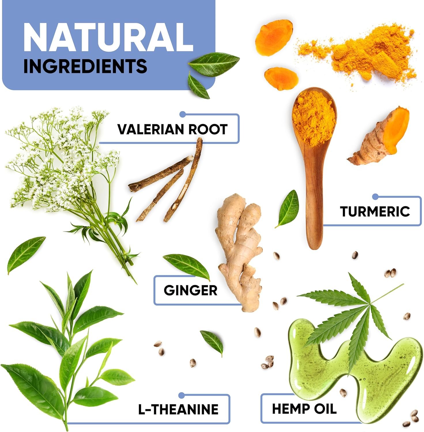 POTENT NATURALS Make an impact on pet mood & behavior with premium Valerian Root, Hemp Oil, Chamomile, Turmeric, Passion Flower, and L-Theanine. Raw natural ingredients deliver fast relief for dog’s stress & anxiety.