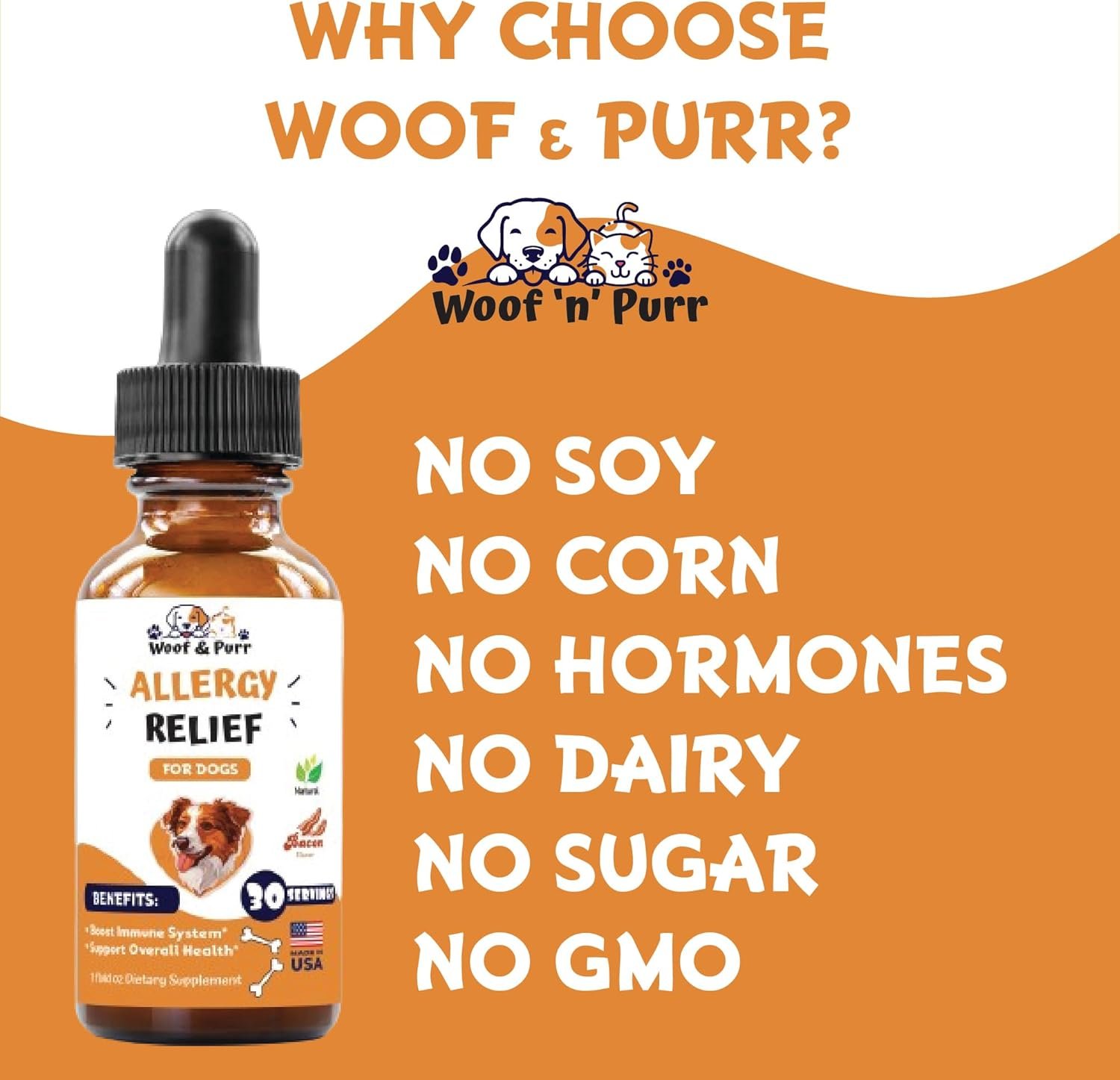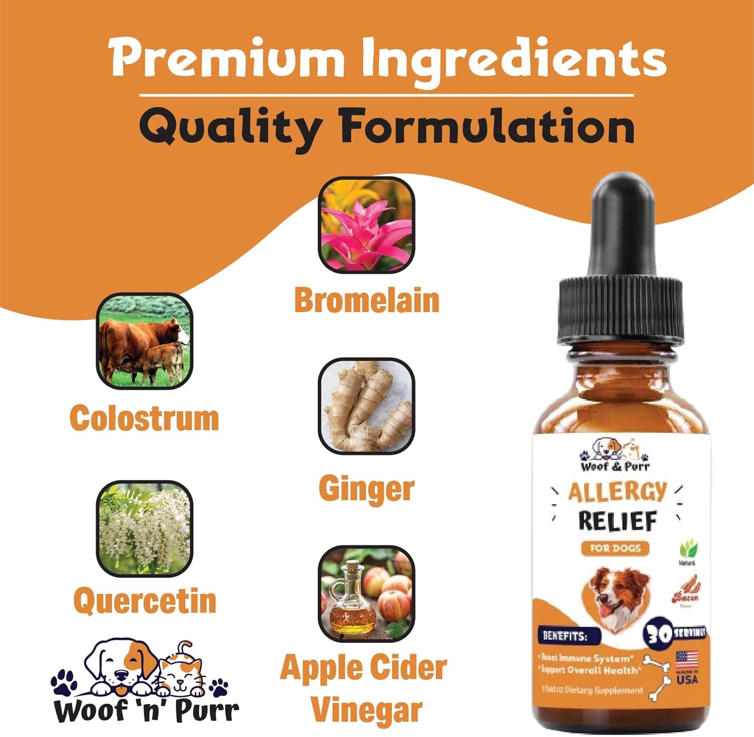 Introducing Woof ’n’ Purr’s Allergy Relief tincture for Dogs – the natural solution your furry friend has been waiting for! We understand how distressing it can be to see your beloved pet suffer from allergies, causing discomfort, scratching, itching, and so much more. That’s why we’ve crafted a powerful herbal tincture to provide fast-acting relief and help your dog regain their vitality. Nature’s Healing Power: Our tincture is a testament to the incredible healing properties found in nature. We’ve carefully selected a blend of herbs renowned for their anti-itching and soothing properties. These herbs work harmoniously to combat a wide variety of allergies, allowing your dog to enjoy life itch-free. Fast Relief, Happy Paws: When allergies strike, you want a solution that works quickly. Woof ’n’ Purr’s herbal tincture is designed to provide rapid relief, easing the itching and discomfort that can make your pet miserable. Say goodbye to those sleepless nights and hello to happy paws! Gentle and Safe: We understand that your dog’s well-being is your top priority. That’s why our tincture is formulated with the utmost care, using only natural ingredients. We avoid harsh chemicals and additives, ensuring a gentle yet effective tincture suitable for dogs of all sizes and breeds. Happy Tails Guarantee: We’re confident in the effectiveness of our Dog Allergy Relief. In fact, we’re so sure that you and your dog will love the results that we offer a Happy Tails Guarantee. If you’re not completely satisfied, let us know, and we’ll make it right.Don’t wait – take the first step towards your dog’s well-being today. Order Woof ’n’ Purr’s Natural Dog Allergy Relief Tincture and let your furry friend enjoy a life free from itching and discomfort. It’s time for a healthier, happier pet with Woof ’n’ Purr by your side!