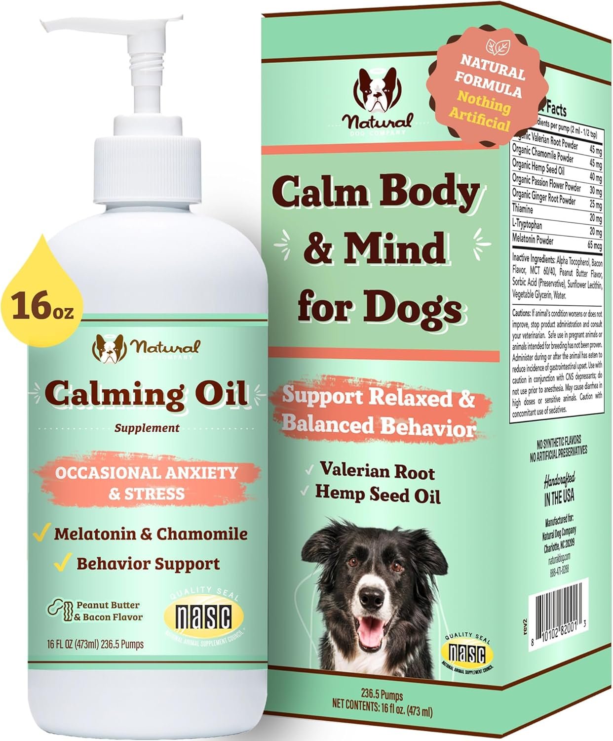 CALMING INGREDIENTS, PEACEFUL PET: Infused with Melatonin for dogs and Valerian Root, our calming oil is crafted using Chamomile, and Ginger Root. This potent blend synergistically soothes and relaxes your dog, effectively easing anxiety with natural herbs.