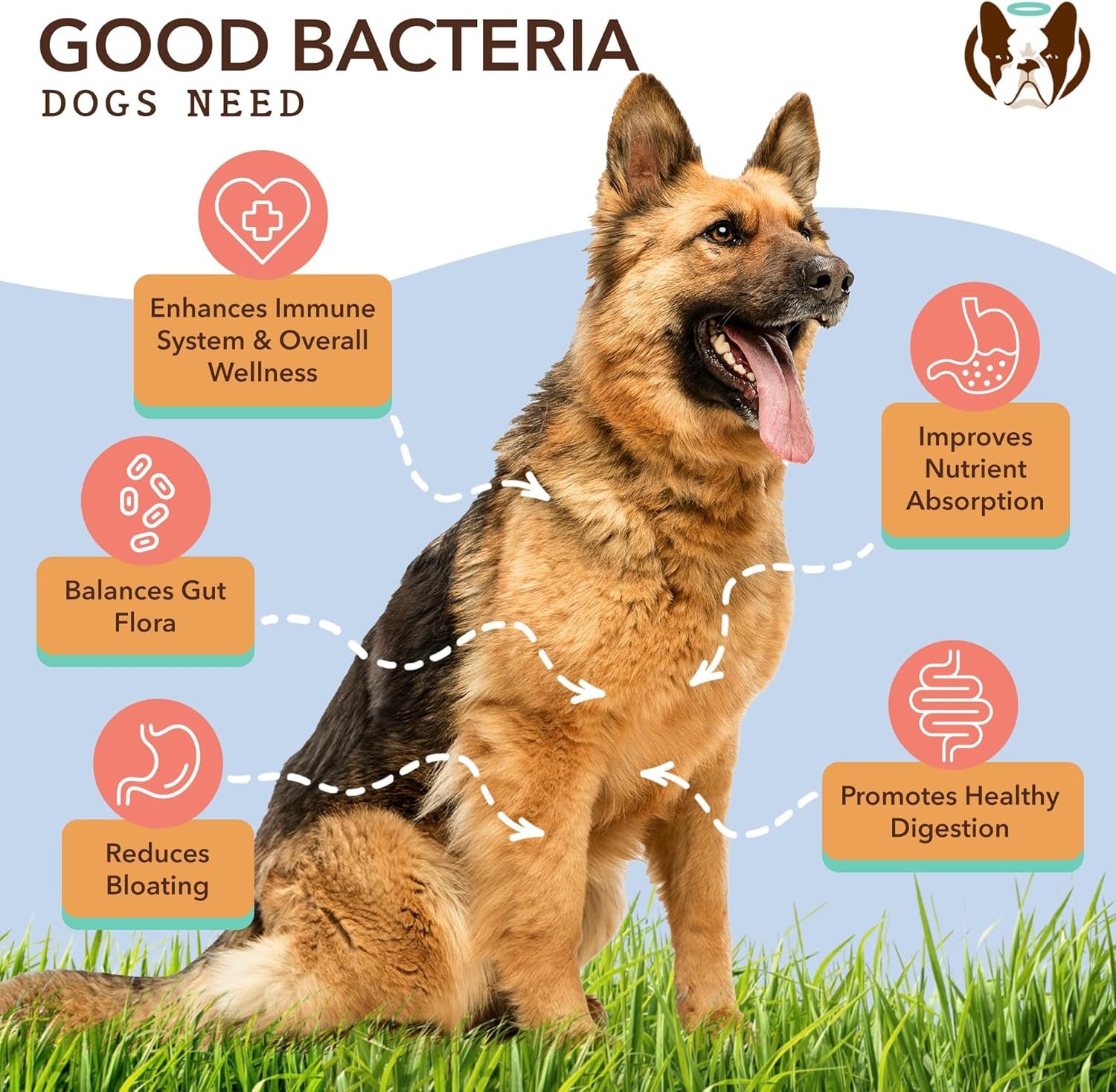 ADVANCED DIGESTIVE HEALTH: Our Super-Flora Probiotic Supplement Chews are formulated with 1 Billion CFU of 7 specific probiotic strains, including Lactobacillus acidophilus and Bifidobacterium bifidum. These chews support proper digestion, regular bowel movements, and a balanced gut microbiome, ensuring your dog’s digestive health is in top condition.