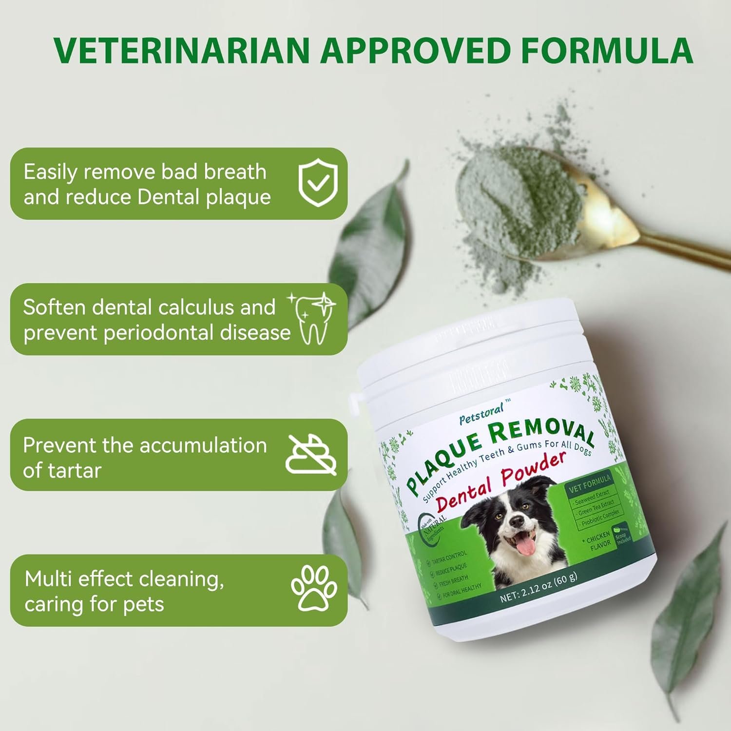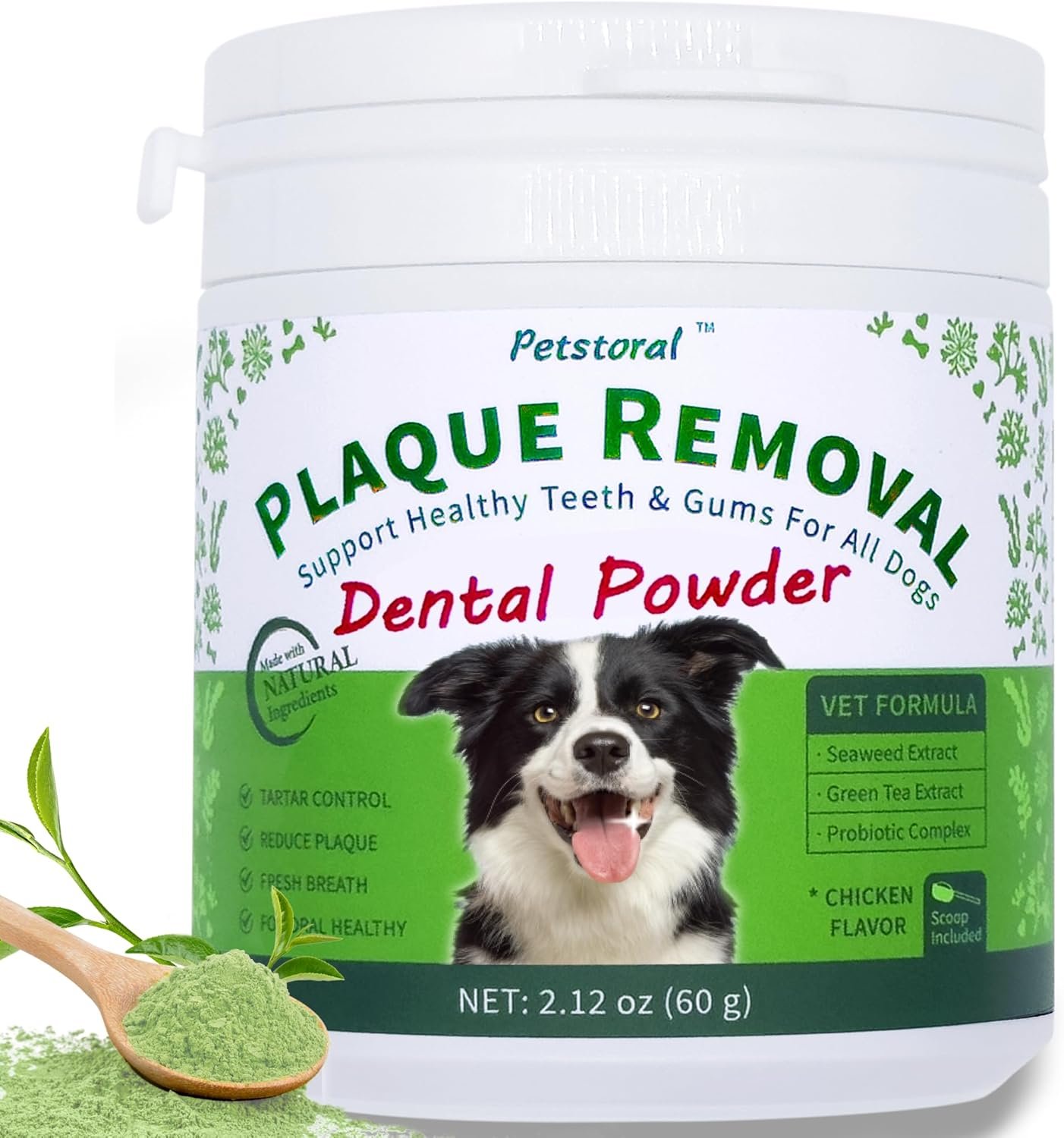 Petstoral Dog Dental Care – Simplify your pet’s dental routine and overcome their resistance to traditional dog toothbrush and toothpaste with Petstoral Natural Plaque Removal Dental Powder. This dog dental chew alternative promotes healthy dog teeth and gums, effectively removing plaque and tartar with just a few spoonfuls a day.