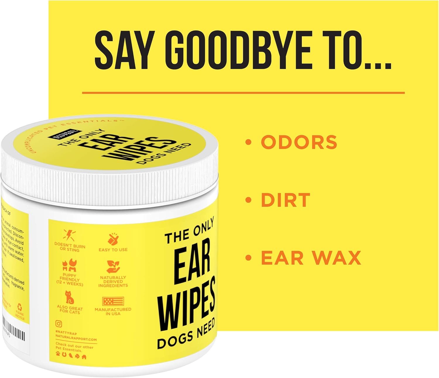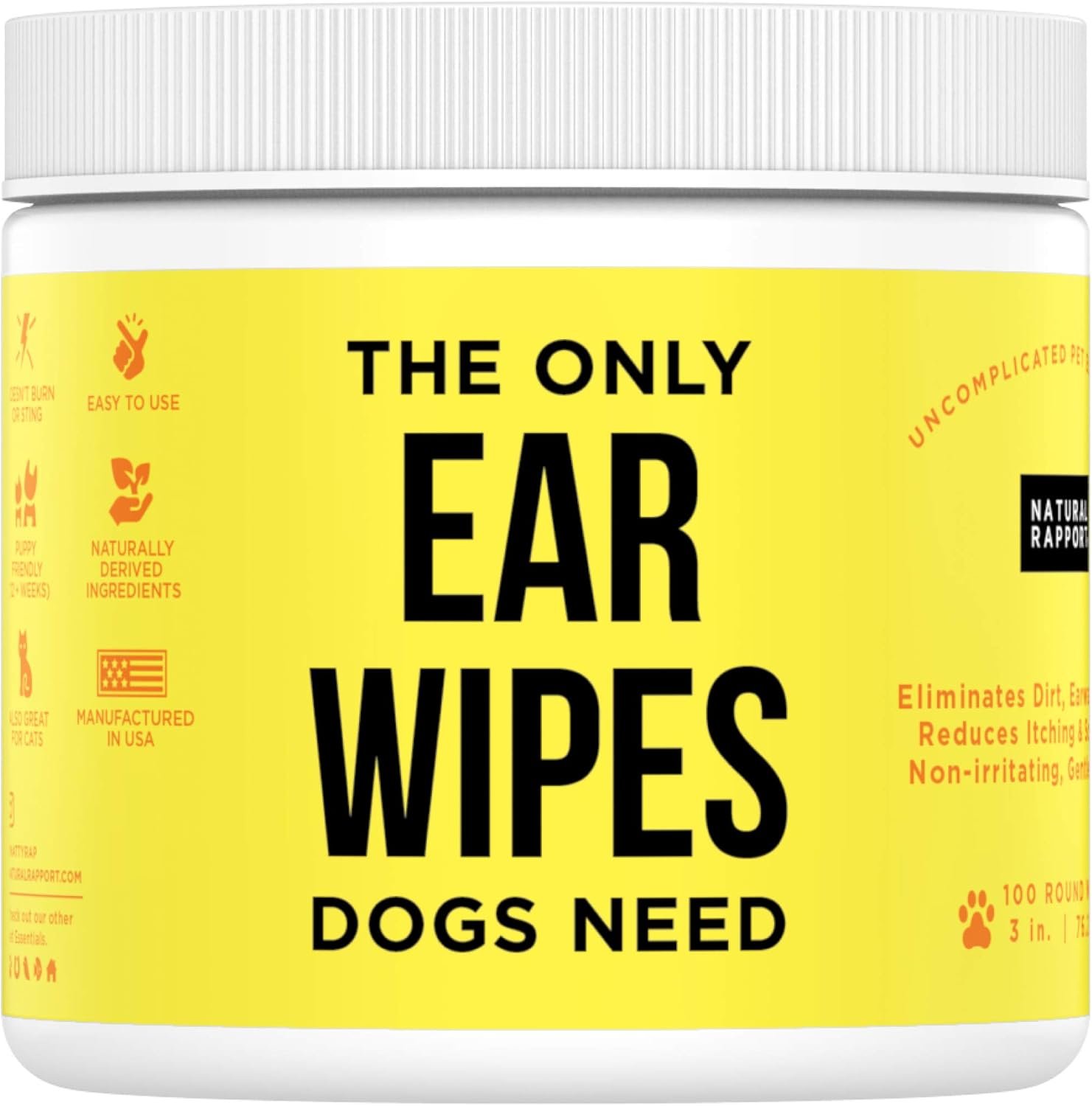 Natural Rapport Dog Ear Cleaner – The Only Ear Cleaner Dogs Need – Ear Cleaner Wipes for Cleaning Out Wax, Dirt, and Contaminants (Wipes, 100 CT)