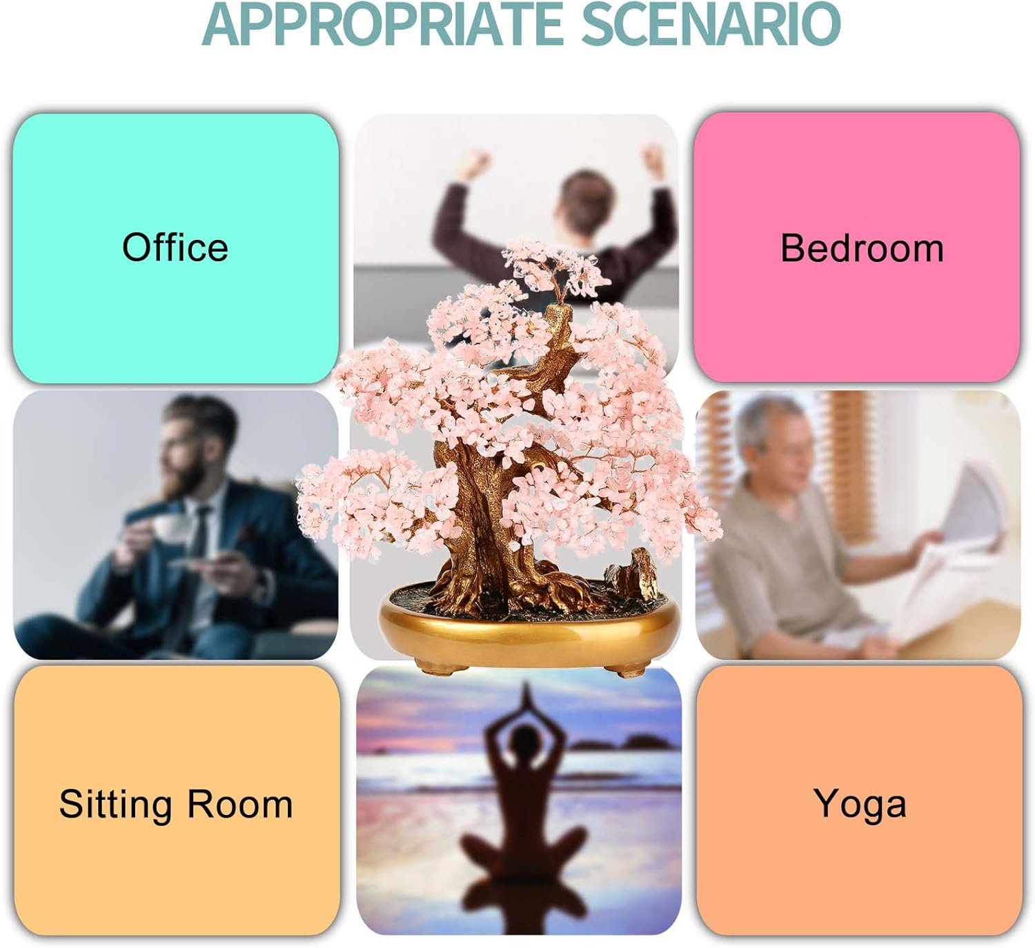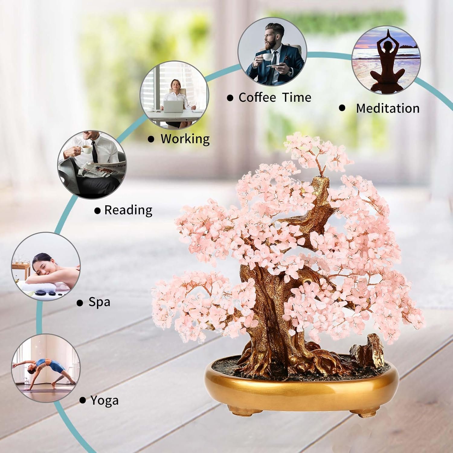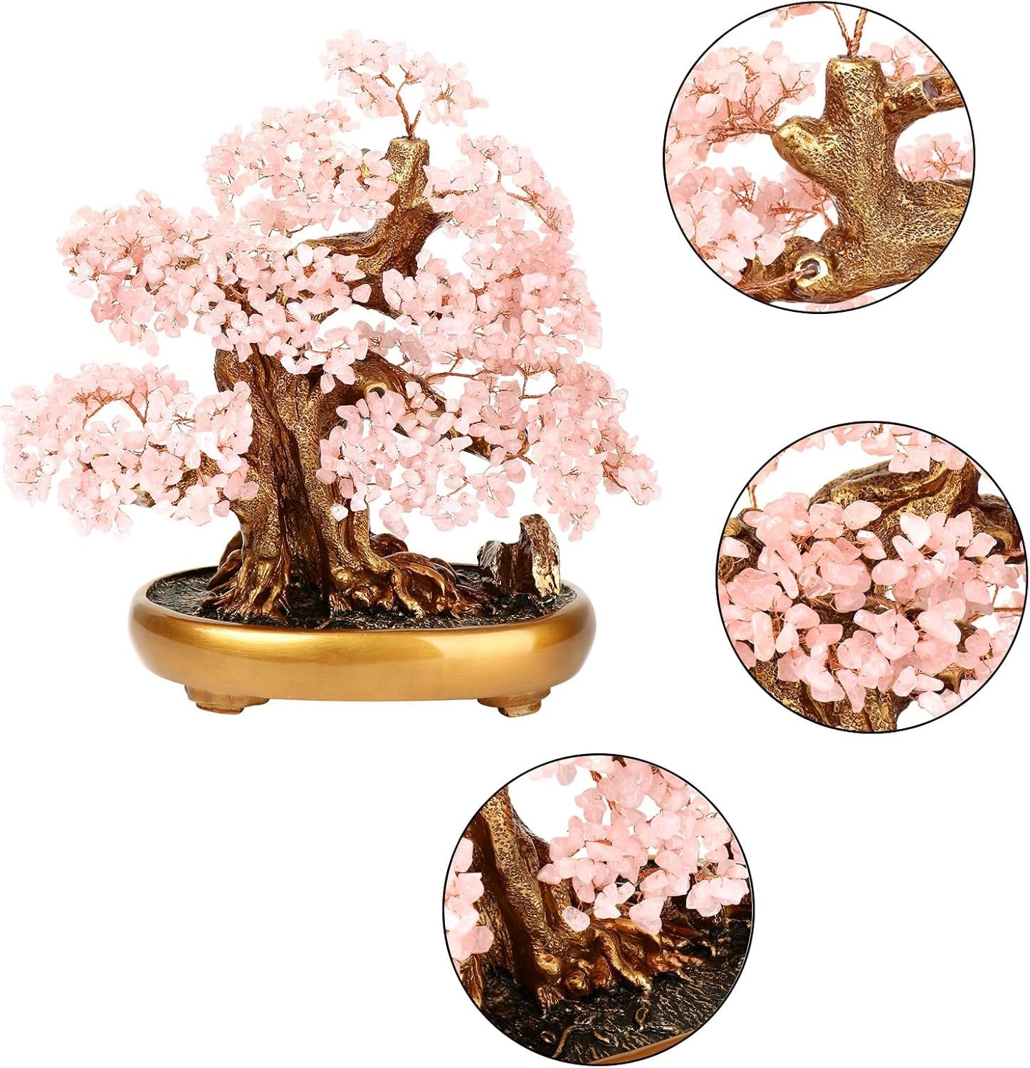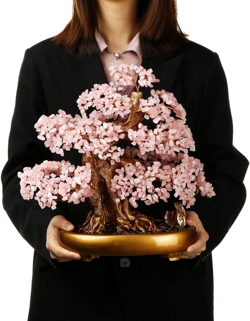 Natural Tree of Life (1,251 Gemstone Count) Crystal Tree with Healing Properties – Bonsai Feng Shui Money Tree for Healing and Luck (Rose Quartz)