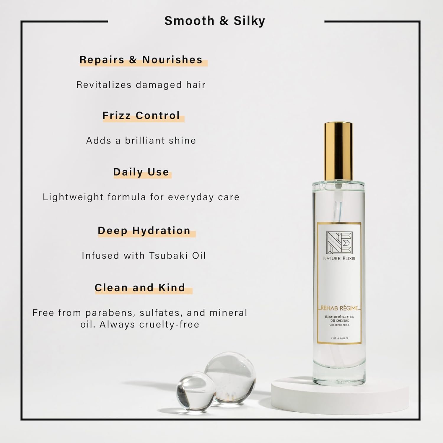 💦 Effortless Elegance: Discover the magic of our Nature Elixir Rehab Regime lightweight hair serum, designed to hydrate and nourish without weighing your hair down.