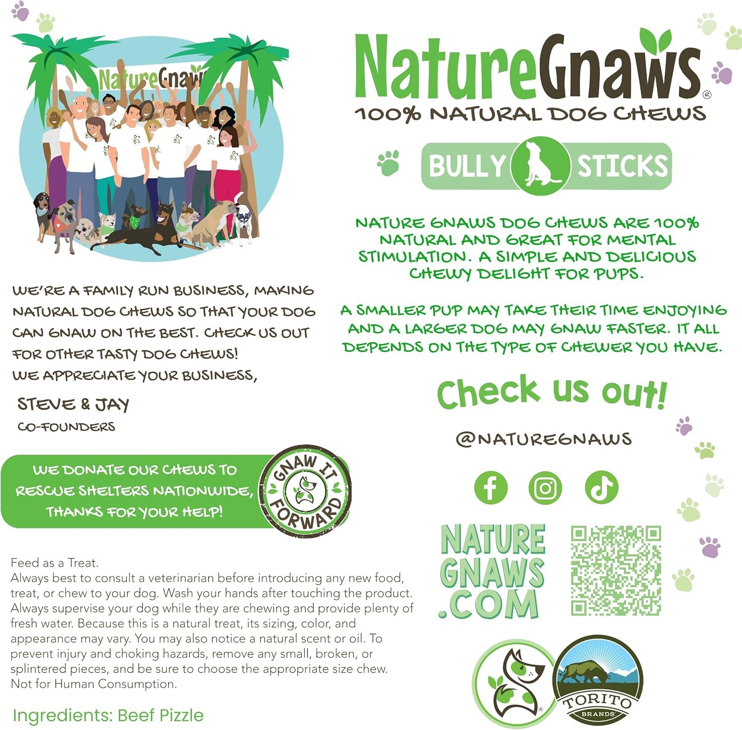 NATURE GNAWS – As a family-run business, we are dedicated to providing 100% natural dog chews, bully sticks and treats made with responsibly sourced ingredients to ensure they are the best simple, natural, and delicious products for your beloved pups.