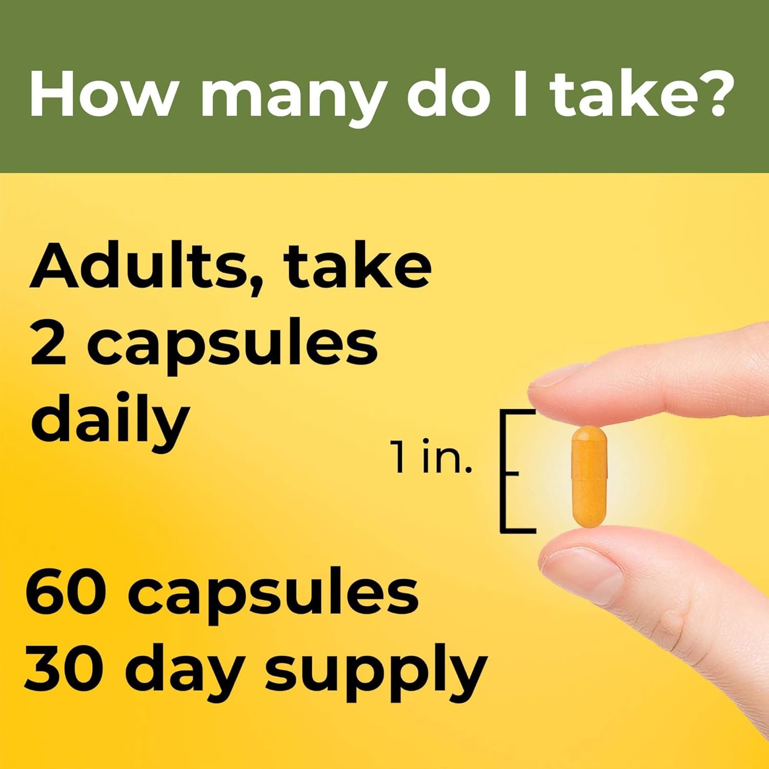 Adults, take two vegetarian Turmeric Curcumin with black pepper capsules daily with water and a meal