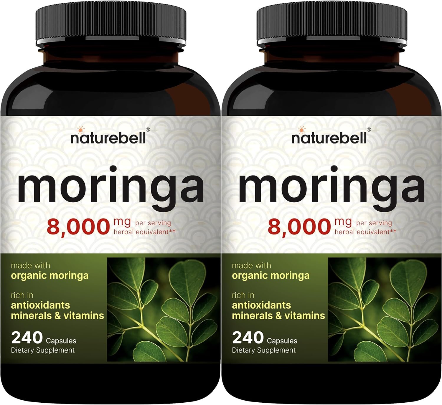NatureBell 2 Pack Moringa Capsules 8000mg Per Serving, 480 Total Capsules | Green Superfood, Skin Health & Immune Support | Non-GMO, Gluten Free