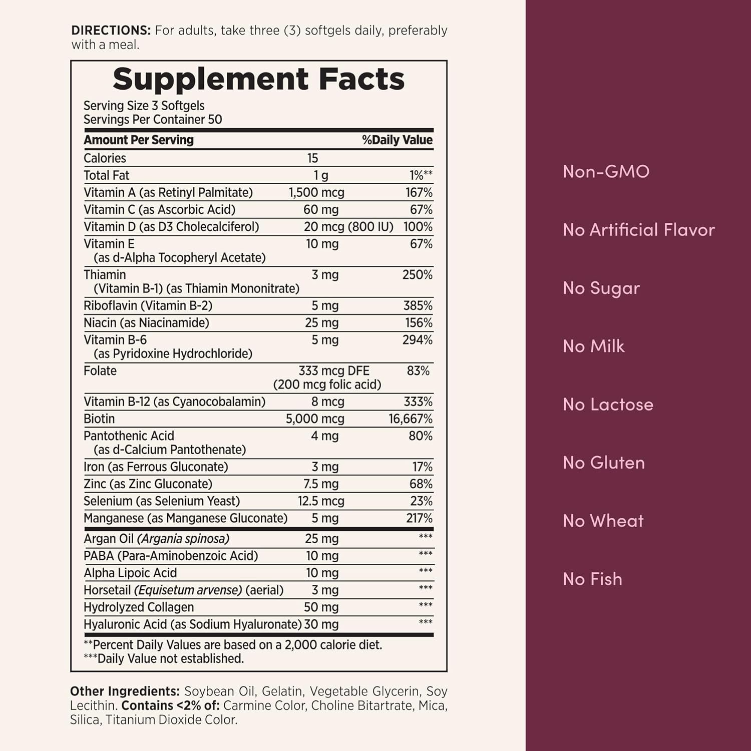 SUPPORTS BEAUTIFUL HAIR; GLOWING SKIN; AND HEALTHY NAILS (1): Hair Skin & Nails Rapid Release Softgels contain biotin; vitamins; minerals; antioxidants and other nutrients consistently found in healthy hair; skin and nails
