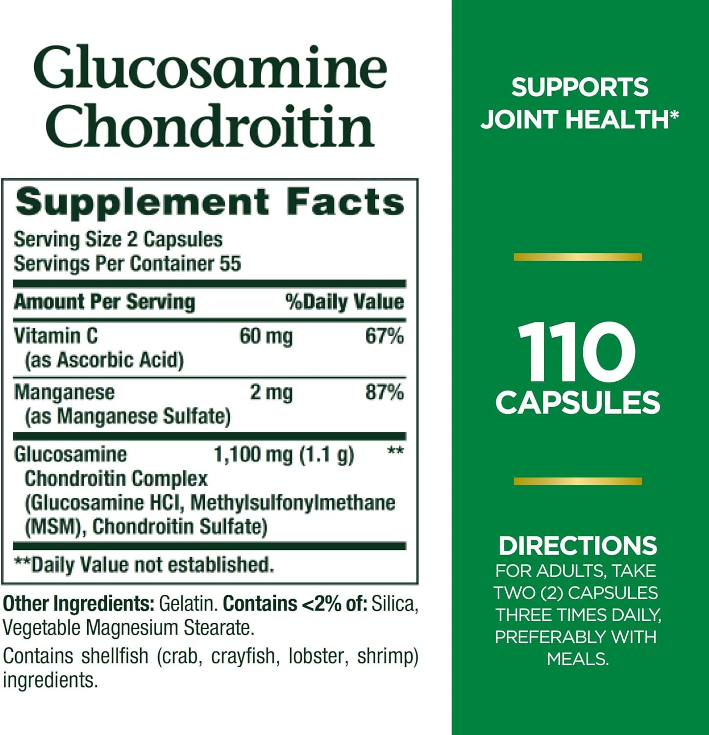 These capsules provide you with Glucosamine and Chondroitin. Glucosamine and Chondroitin Complex help support comfortable movement, while providing support for healthy cartilage and joint structure.(1) (1) These statements have not been evaluated by the Food and Drug Administration. This product is not intended to diagnose, treat, cure or prevent any disease.