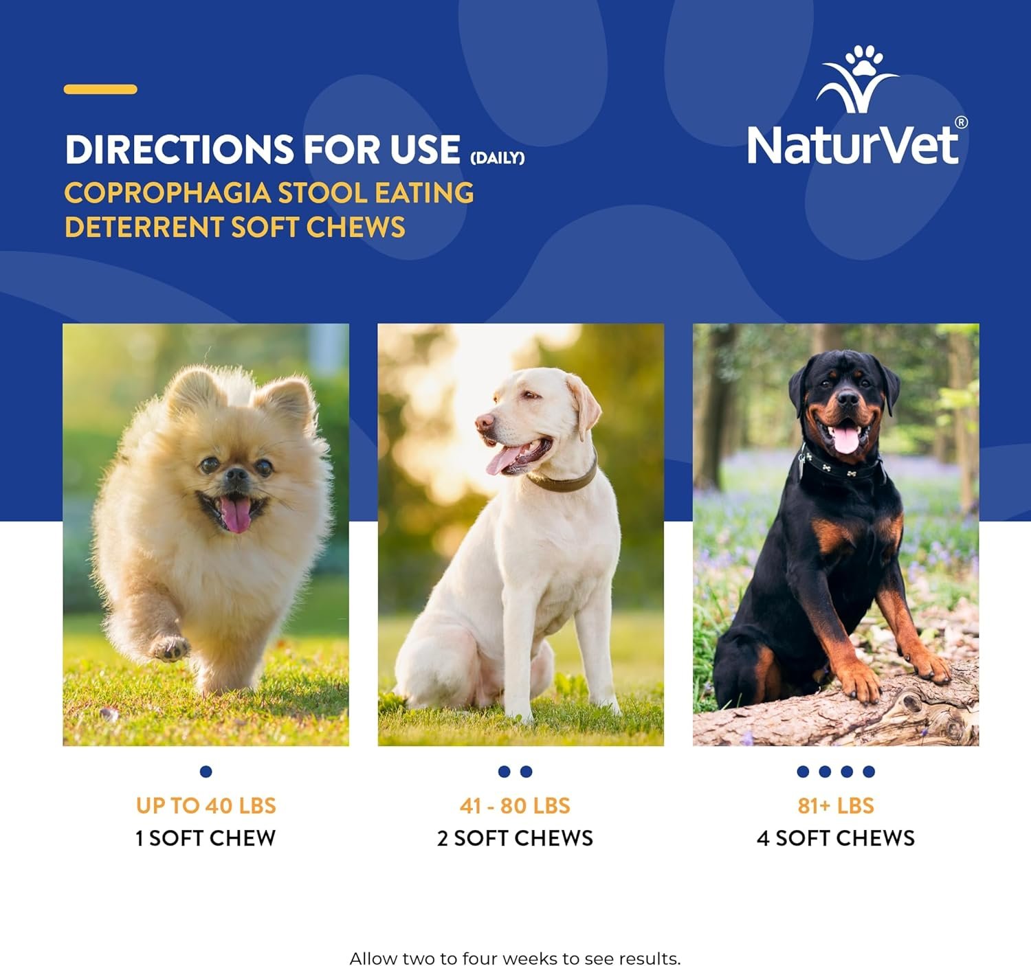 Helps deter dogs from consuming their own stool or other dogs’ stools if they are also fed NaturVet Coprophagia Stool Eating Deterrent Soft Chews.
