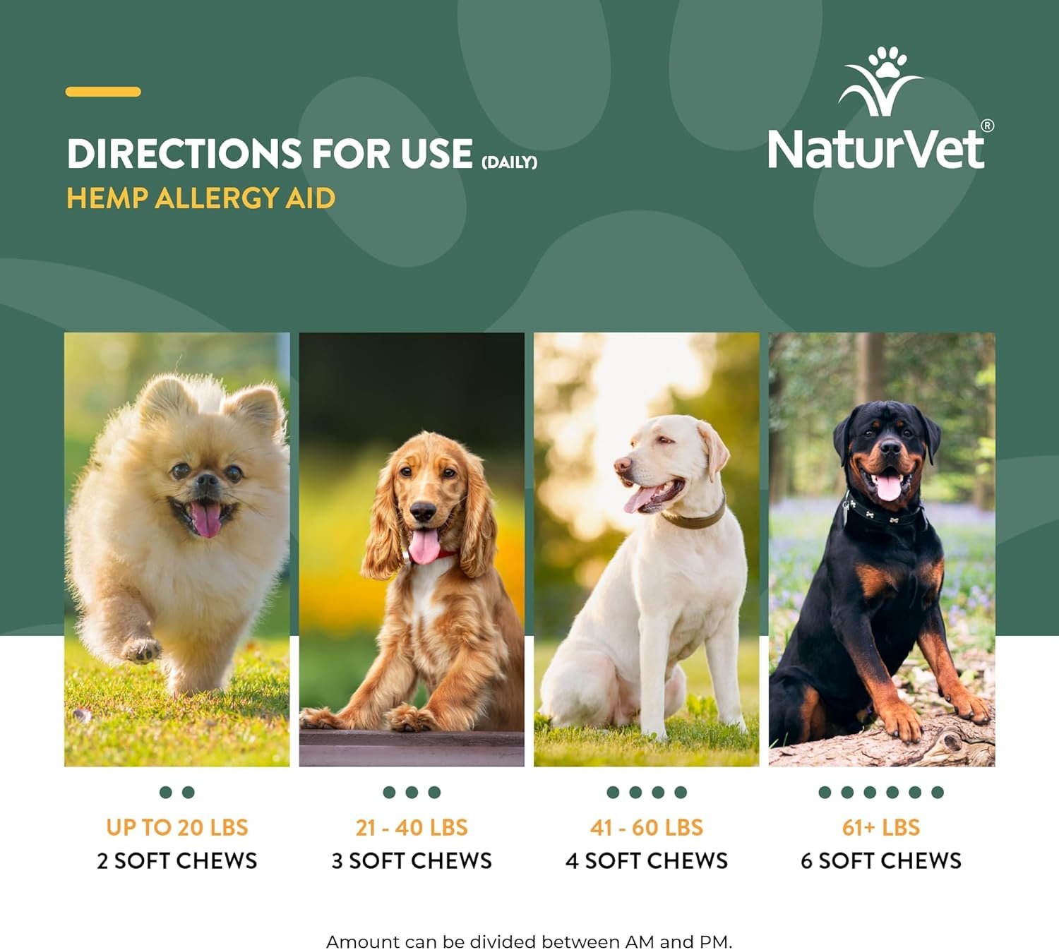 ALLERGY SUPPLEMENT FOR DOGS: Help your furry friend weather the changes in season with this NaturVet Hemp Allergy Aid Supplement for dogs. This dog supplement is rich in antioxidants, omegas, hemp seeds DHA and EPA to help boost your pet’s immune system.