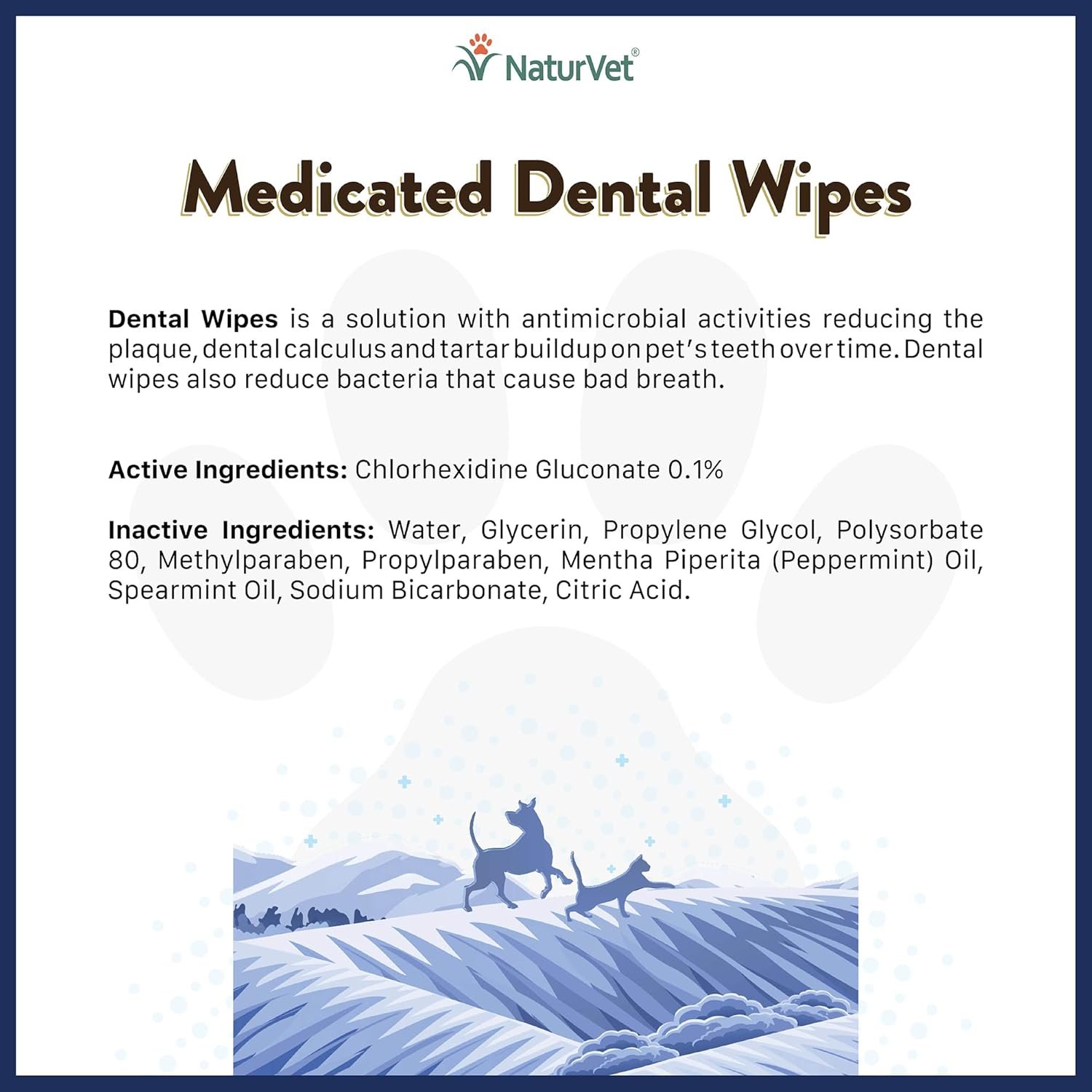 NaturVet’s Medicated Dental Wipes for Dogs & Cats is a solution with antimicrobial activities reducing the plaque, dental calculus and tartar buildup on pet’s teeth over time. Dental wipes also reduce bacteria that cause bad breath.