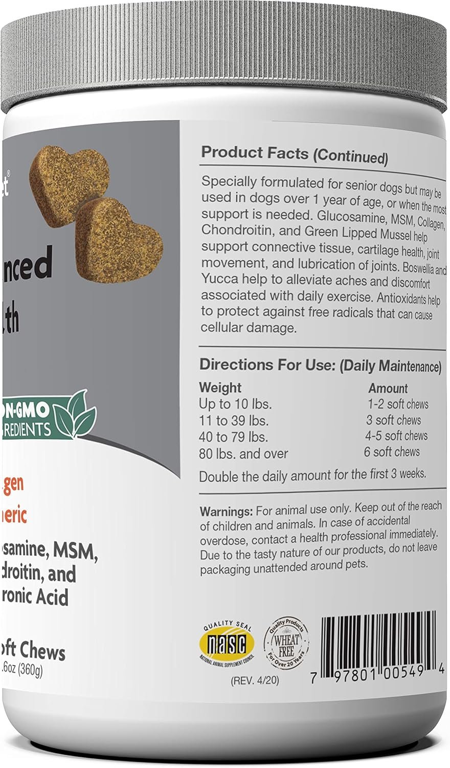NaturVet Senior Advanced Joint Health Dog Supplement – Includes Glucosamine, MSM, Chondroitin, Collagen – Helps Supports Canine Joint Health Function – 120 Ct. Soft Chews