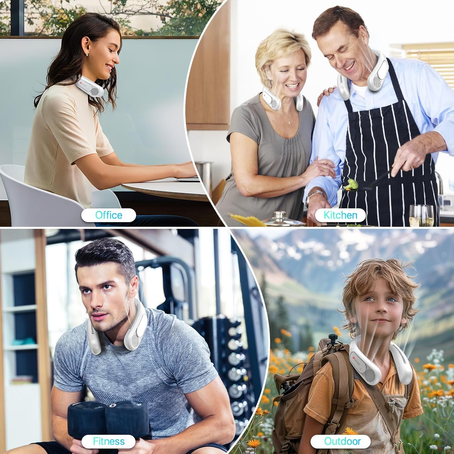 【Sleek & Trendy Design, Stylish & Practical】The portable fan for travel features 360-degree surrounding airflow for cooling, a stylish appearance, and a hands-free design convenient for trips, easy to wear around the neck. Personal fans for your neck are useful for staying cool during various outdoor activities such as gardening, traveling, hiking, biking, and concerts. They’re also suitable for all rooms, keeping cool whether you’re working, exercising, cooking, or enduring hot environments.