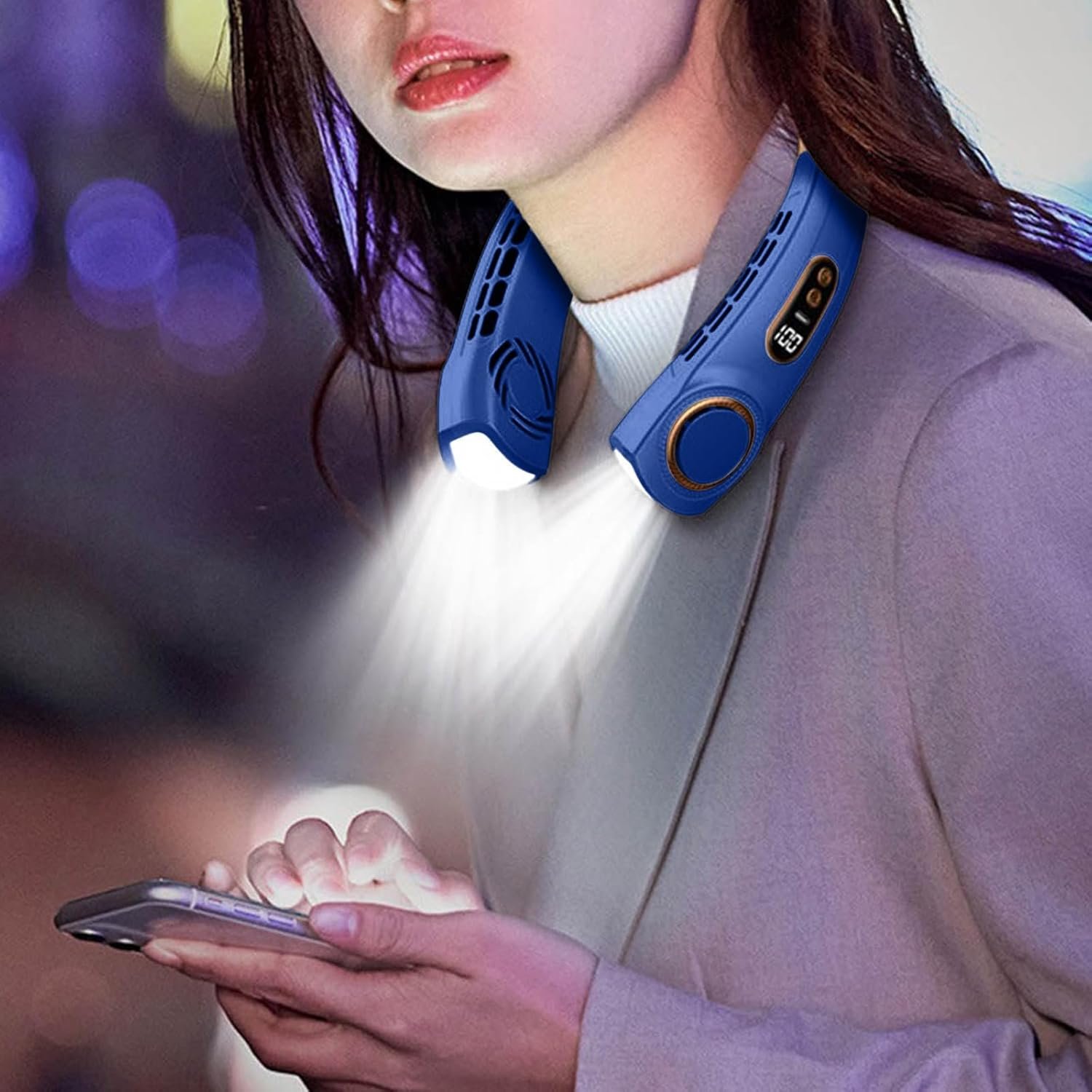 πππγBladeless γ Our leafless neck fan adopts 2 turbo motors to transfer cooling and fresh air from 60 dedicated air outlets to drive away heat from your neck to your cheek and face. No more worry about hair/beard getting caught; just slip it on your neck and enjoy the cool breeze while looks cool.