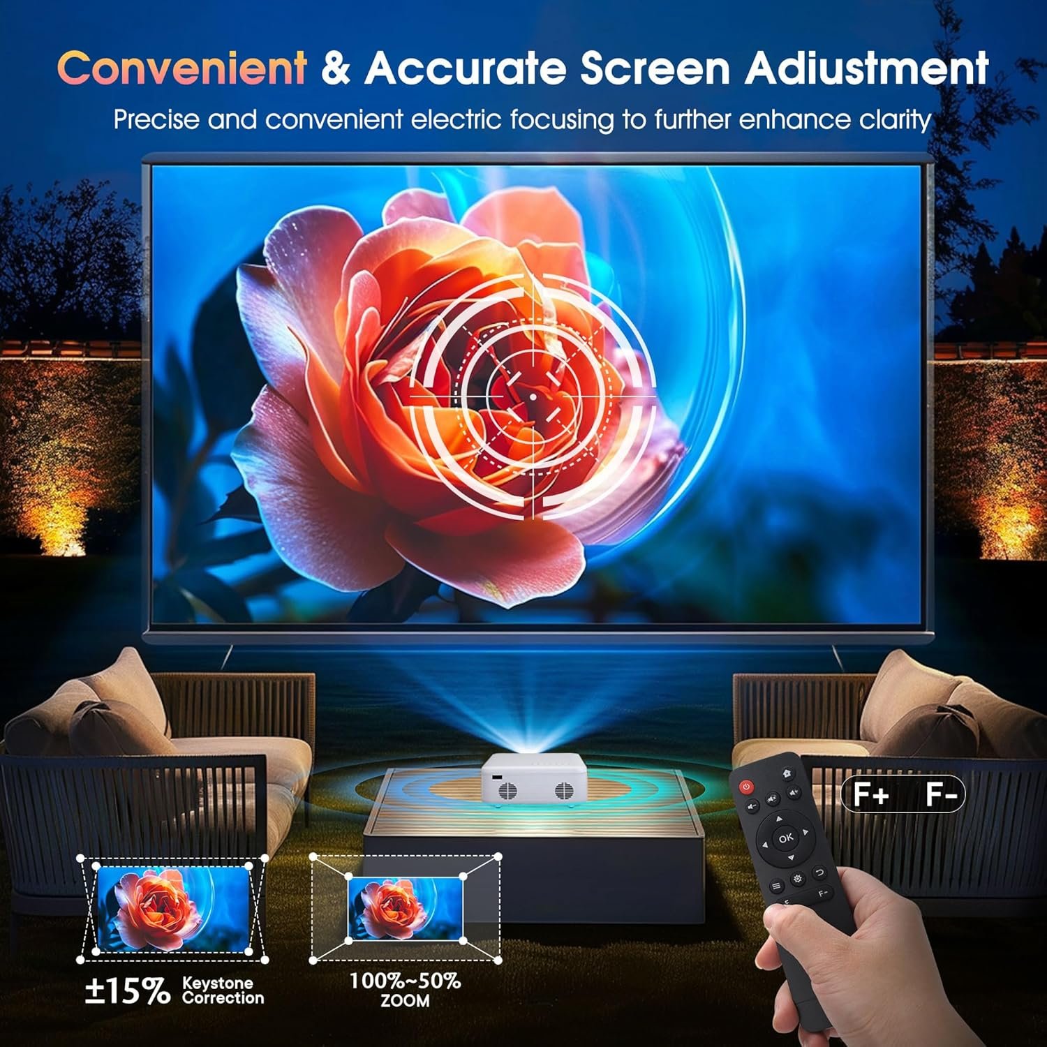【Native 1080P & 15000LM】 2024 New upgrade projector features true native 1080P Full HD with 4K resolution support,presenting high-definition picture quality.With a resolution of 1920*1080,The projector brightness of 15000 lumens and an ultra-high 10000:1 contrast ratio give you sharper, brighter, and more detailed images. Support smartphones and computers to play 4K videos.If you have a high requirement for clarity of projector, This Full HD projector must be your favorite