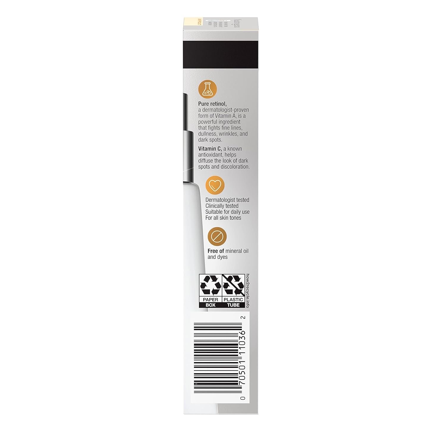 Daily facial serum formulated with pure retinol, a dermatologist-proven form of vitamin A to fight fine lines, dullness, wrinkles and dark spots, and vitamin C, to help diffuse the look of dark spots and discoloration
