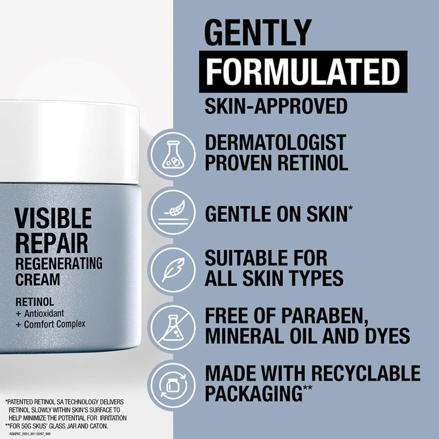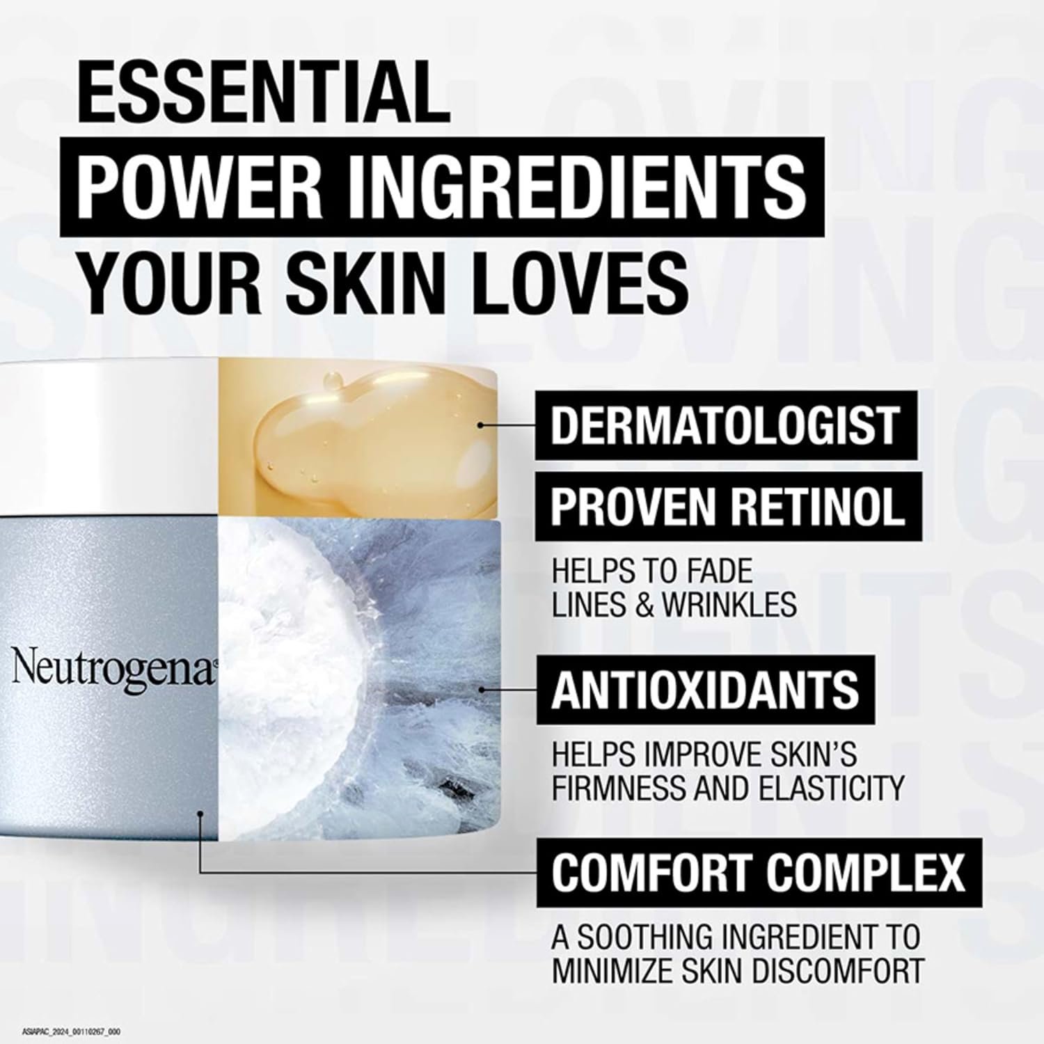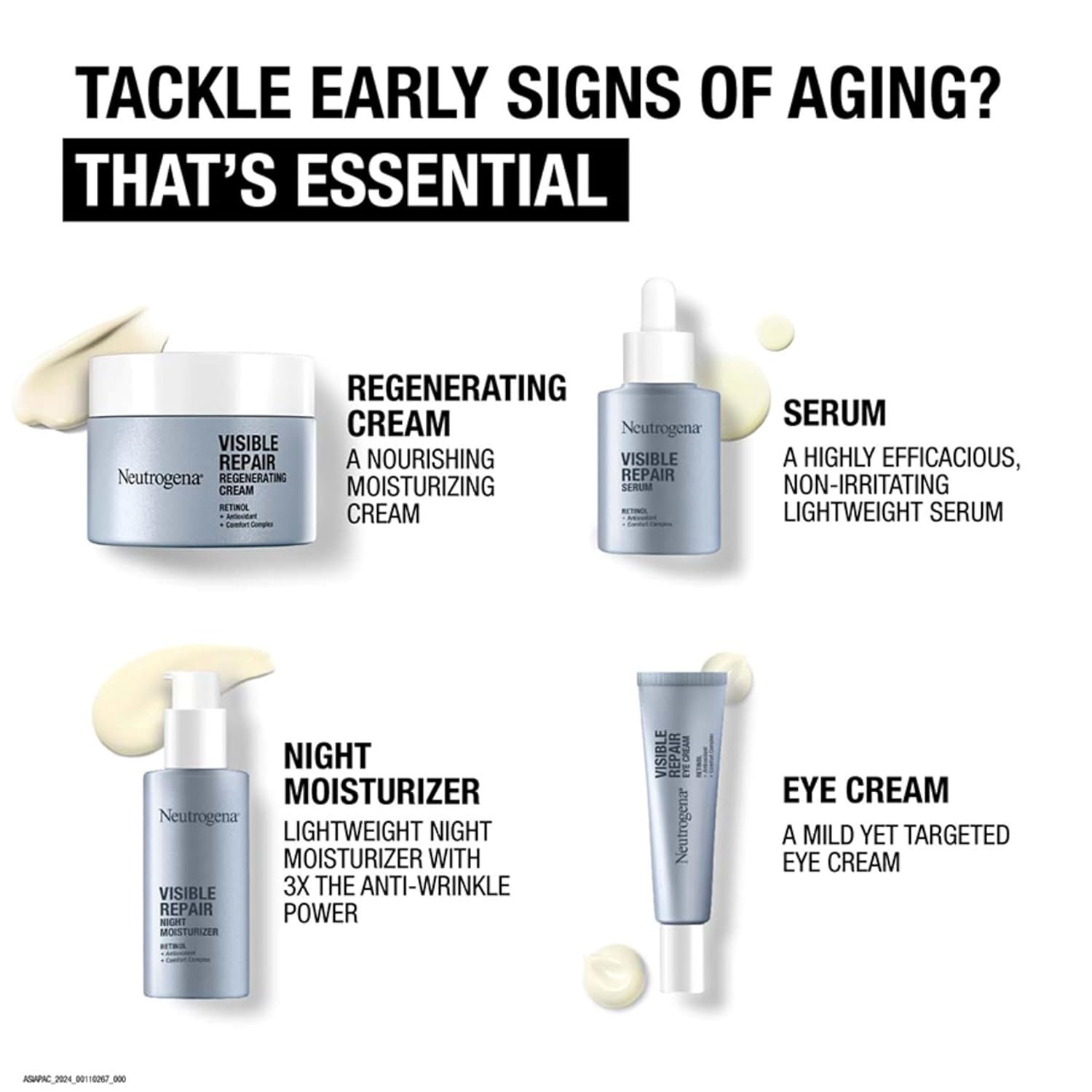 1.7-ounce jar of Neutrogena Visible Repair Retinol Regenerating anti-age face & neck cream moisturizer with hyaluronic acid. Your Rapid Wrinkle Repair just got upgraded, now featuring a soothing complex