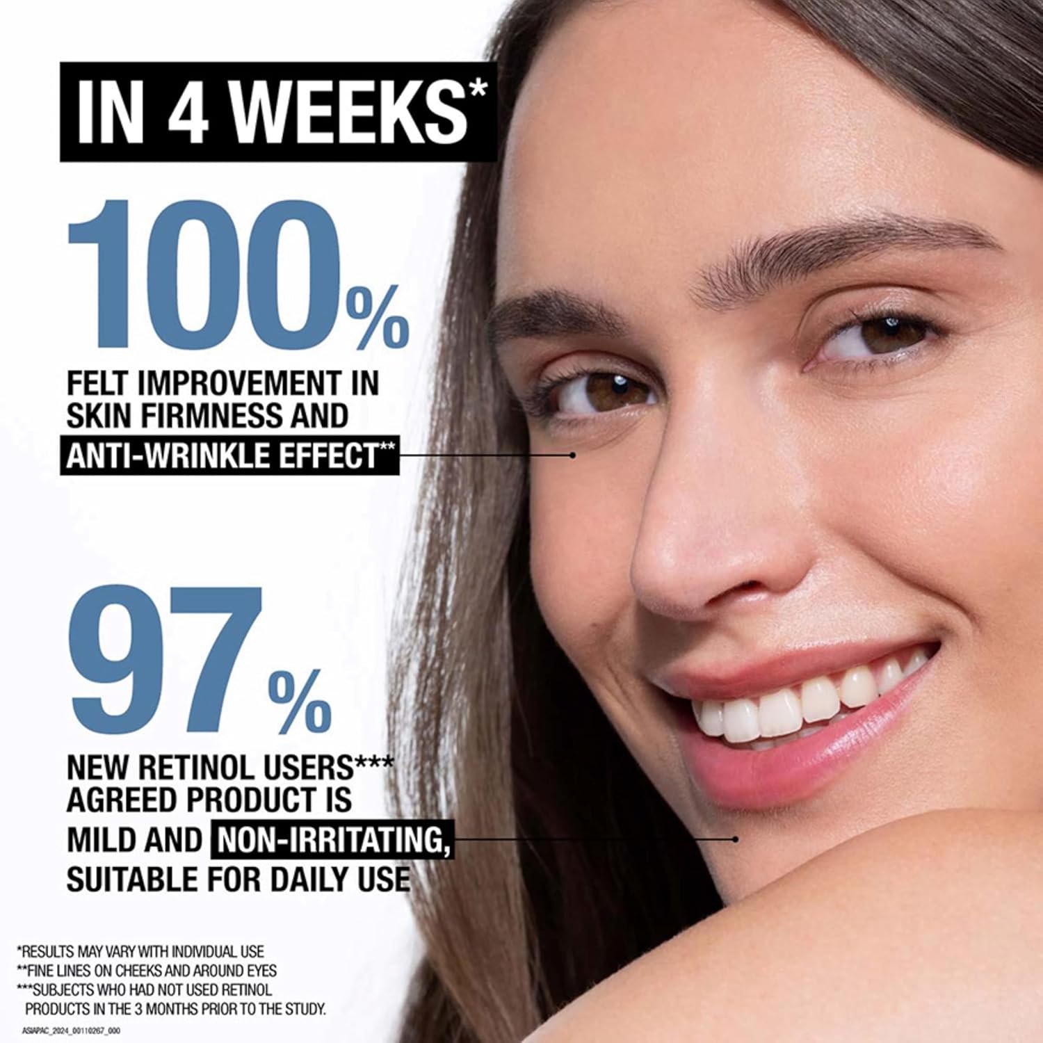 Wrinkle cream with clinically-proven results instantly hydrates for smoother skin & smooths the look of fine lines & reduces the look of dark spots in just one week & fades the look of deep winkles, including forehead & cheek wrinkles in four weeks