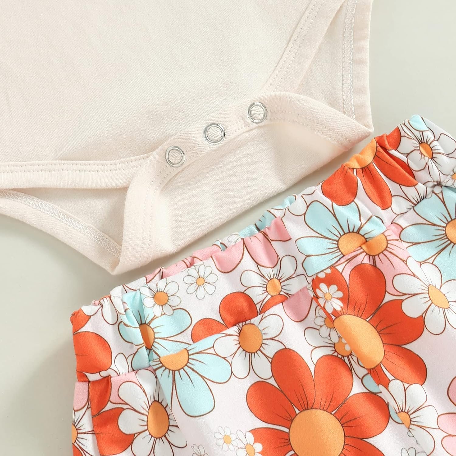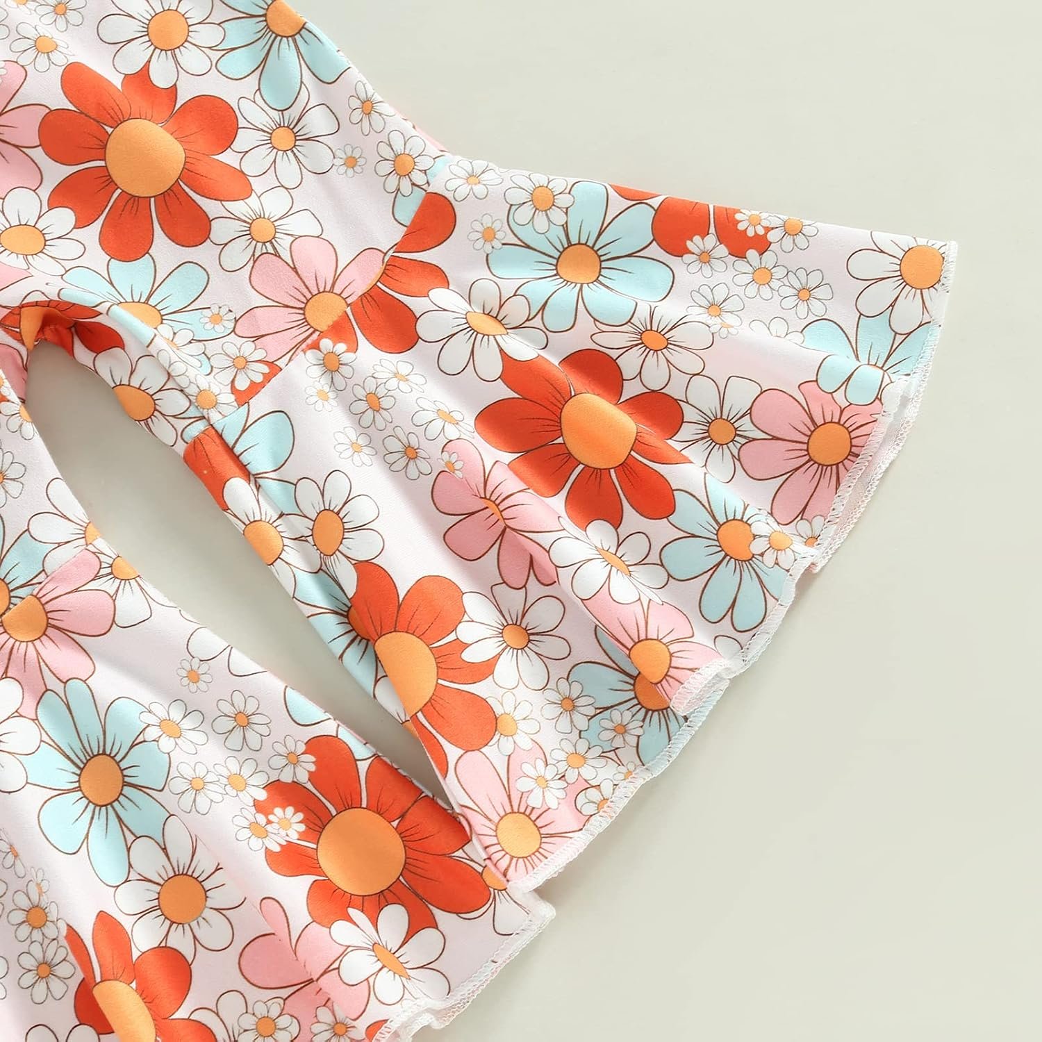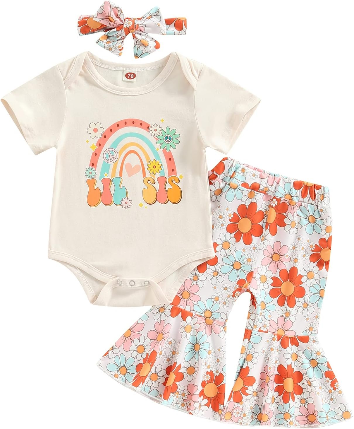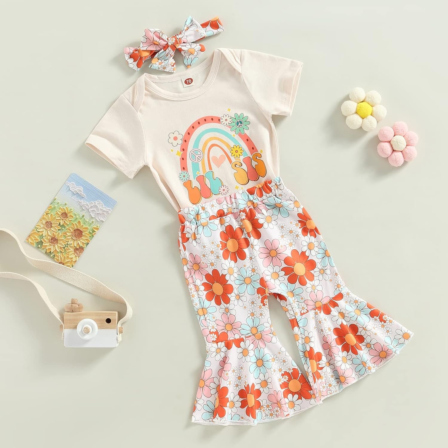 Infant Baby Girls Pants Set, Short Sleeve Letters Print Romper Bodysuit Top with Floral Flare Pants and Headband