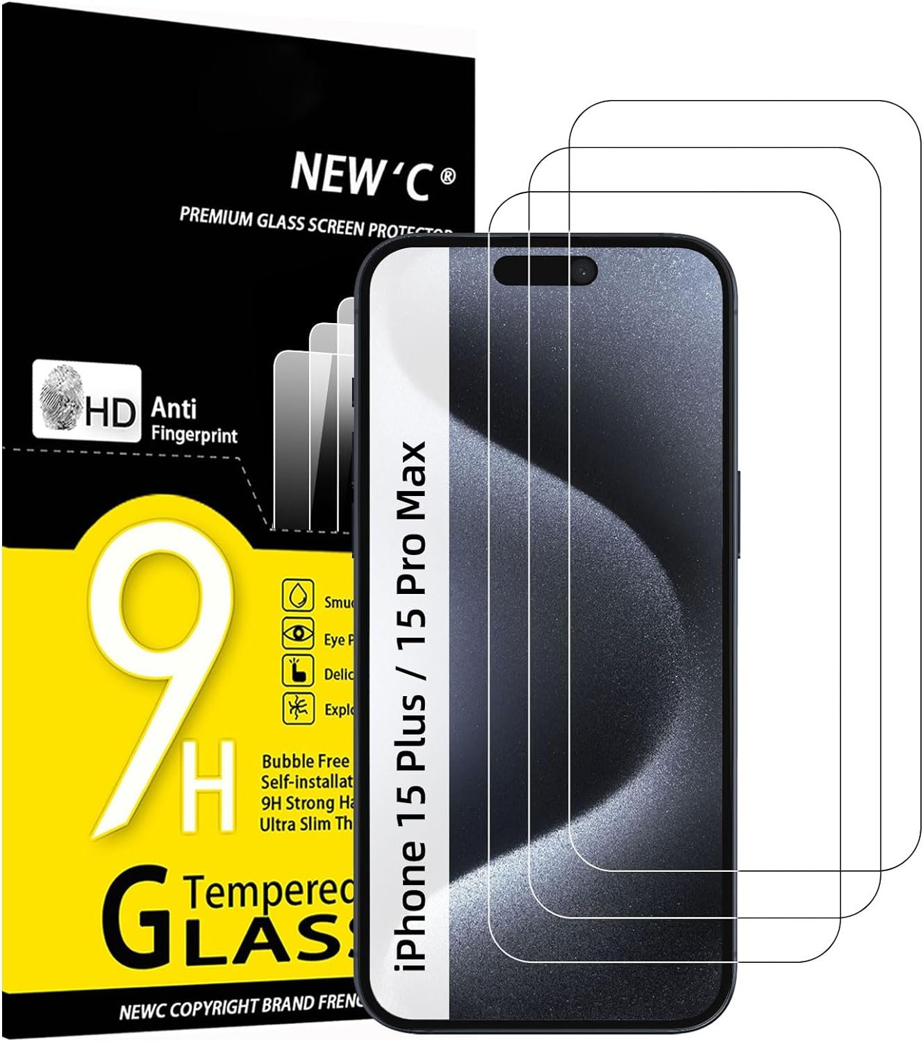 NEW’C 3 Pack Designed for iPhone 15 Pro Max/ 15 Plus (6.7 Inch) Screen Protector Tempered Glass,Case Friendly Ultra Resistant