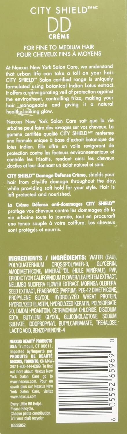 Born in salons and perfected by science, each Nexxus system is crafted with proteins extracted from nature’s most precious ingredients. Looking for a way to keep your style in shape while working downtown? City Shield Damage Defense Hair Crème, enriched with lotus extract, shields straight and fine hair from city-life damage while also providing soft hold for your style. Hair is left protected and nourished for a refreshing, manageable style that lasts throughout the day. Nexxus recommends: When used as Step 3 in the Nexxus City Shield Collection, City Shield Damage Defense Crème can be the ideal way to keep your hair silky and beautifully protected. Step 1: Apply City Shield Shampoo to wet hair and experience the rich foamy lather. Rinse thoroughly. Step 2: Smooth and press the rich City Shield Conditioner into damp hair. Leave for 3 minutes and rinse thoroughly. For hair that tangles easily, detangle after applying. Step 3: If you have fine or straight hair, follow with Damage Defense Crème for fine to medium hair. Pump a small amount into palm and spread evenly on hands. Apply to damp or dry hair focusing on mid lengths and ends and style to suit your mood.