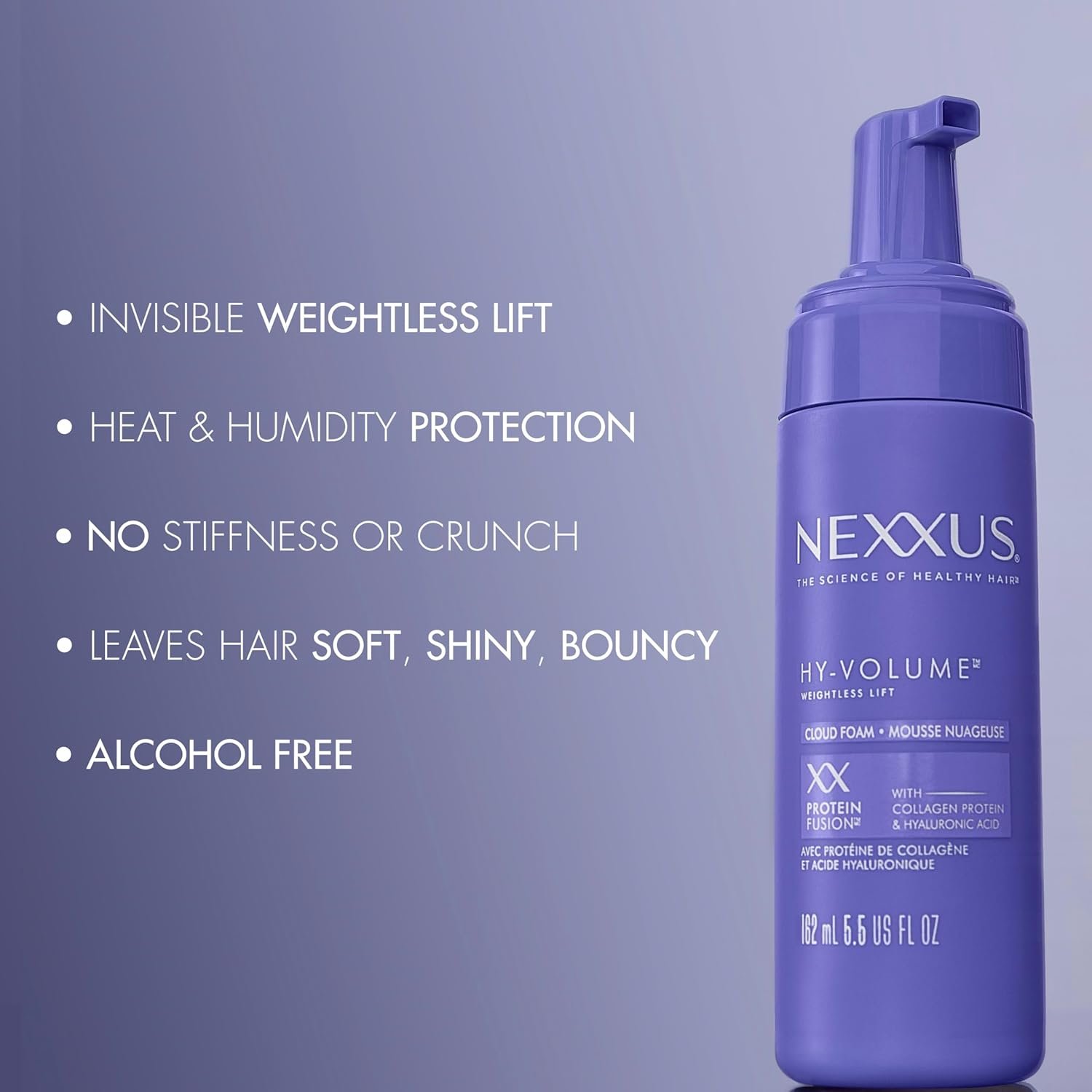Nexxus HY-VOLUME Weightless Lift Cloud Foam PROTEIN FUSION with Collagen Protein & Hyaluronic Acid For Flat & Limp Hair for 48 Hours of Volume 5.5 fl oz