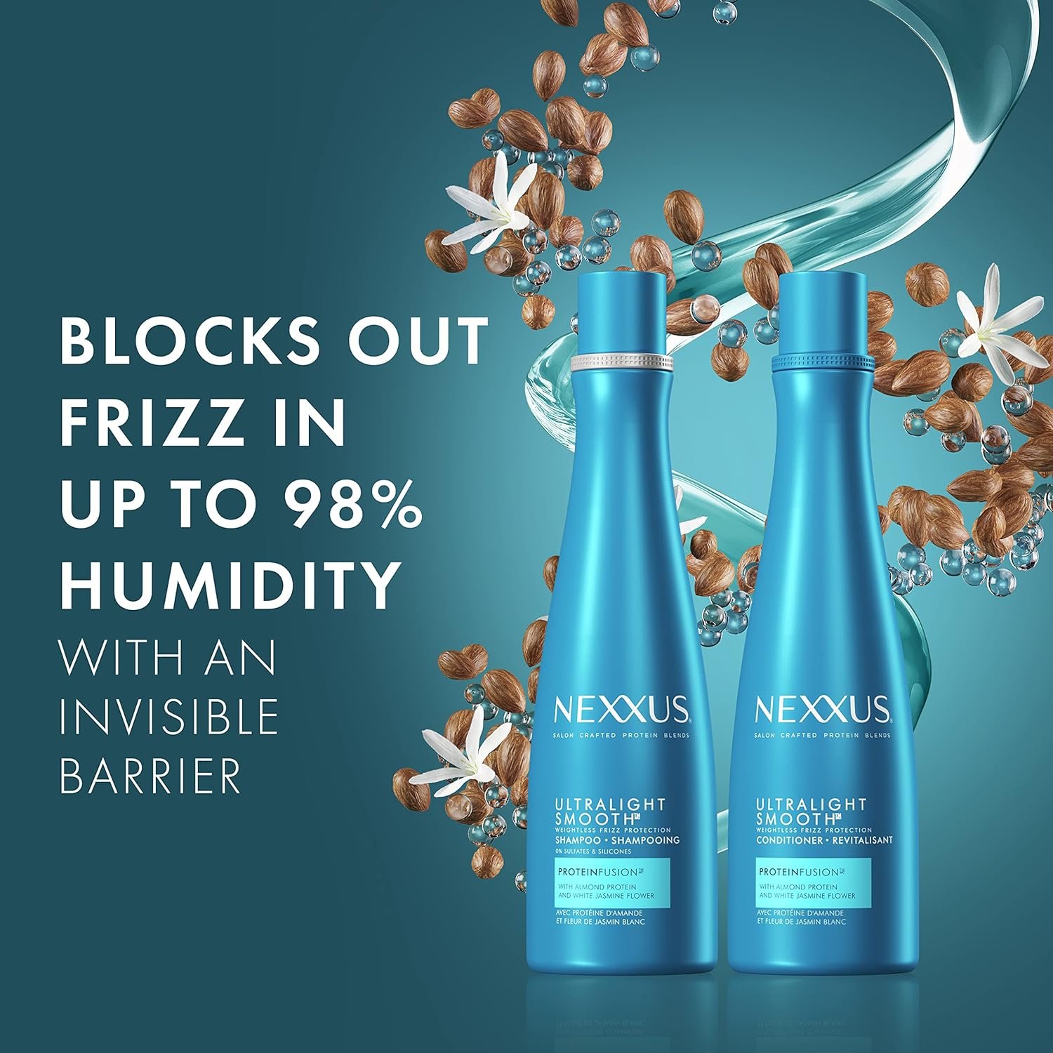 TAKE CONTROL AGAINST FRIZZ: Nexxus Ultralight Smooth Shampoo and Conditioner form a weightless, invisible barrier around each strand to block out frizz in up to 98% humidity for smooth hair