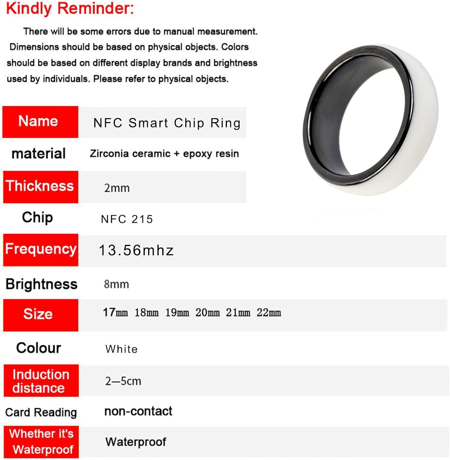 Ring color: white on outer surface