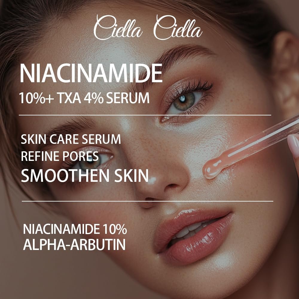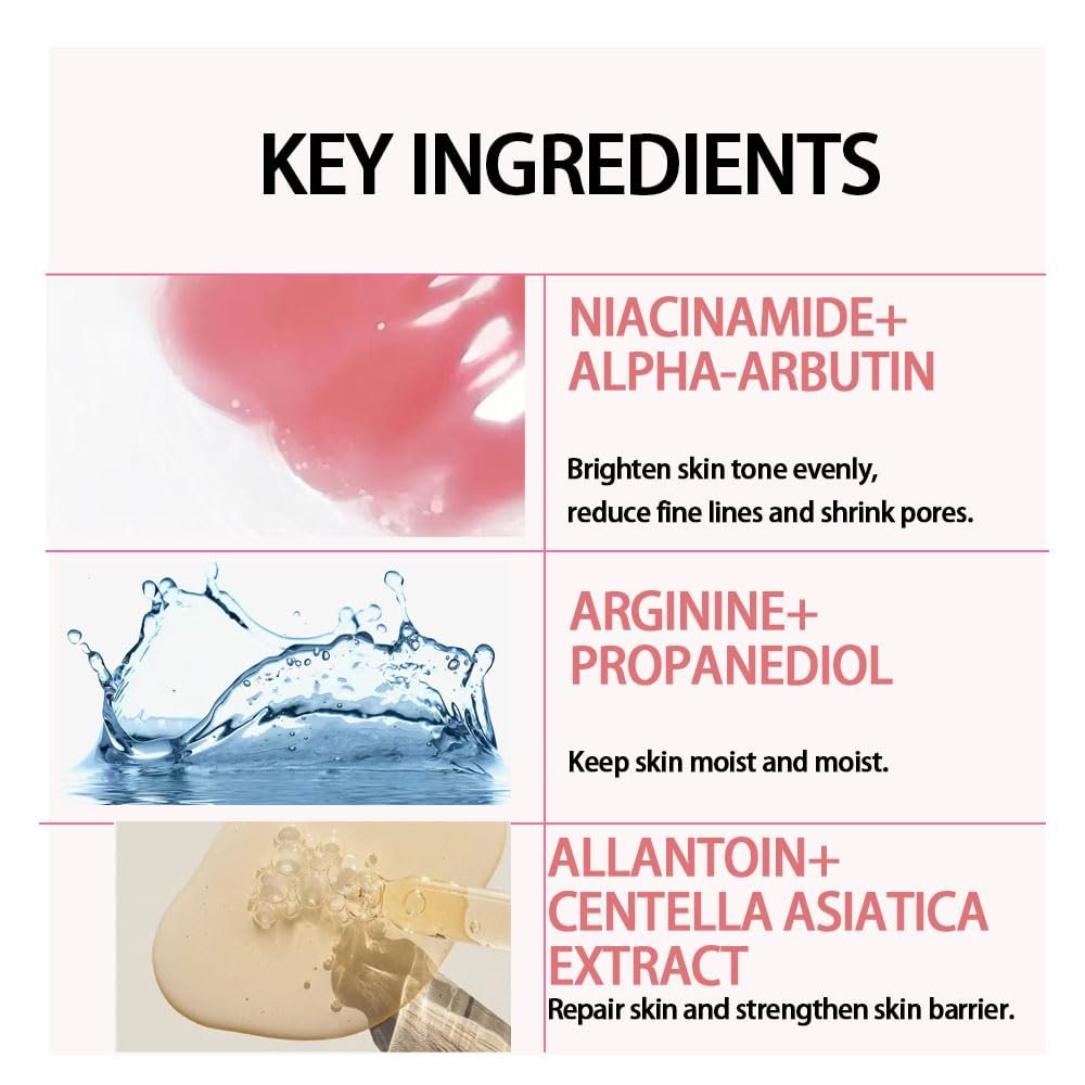 2.NIGHT SERUM-NICOTINAMIDE ESSENCE :carefully crafted mixture containing niacinamide, alpha-arbutin, allantoin,centella asiatica extract, fructose, and polygonumcuspidatum rootextract