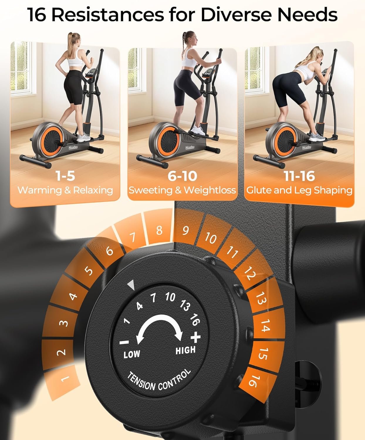 Niceday Elliptical Machine, Elliptical Exercise Machine for Home with Hyper-Quiet Magnetic Driving System, Elliptical Trainer with 15.5IN-18IN Stride, 16 Resistance Levels, 400LBS Loading Capacity