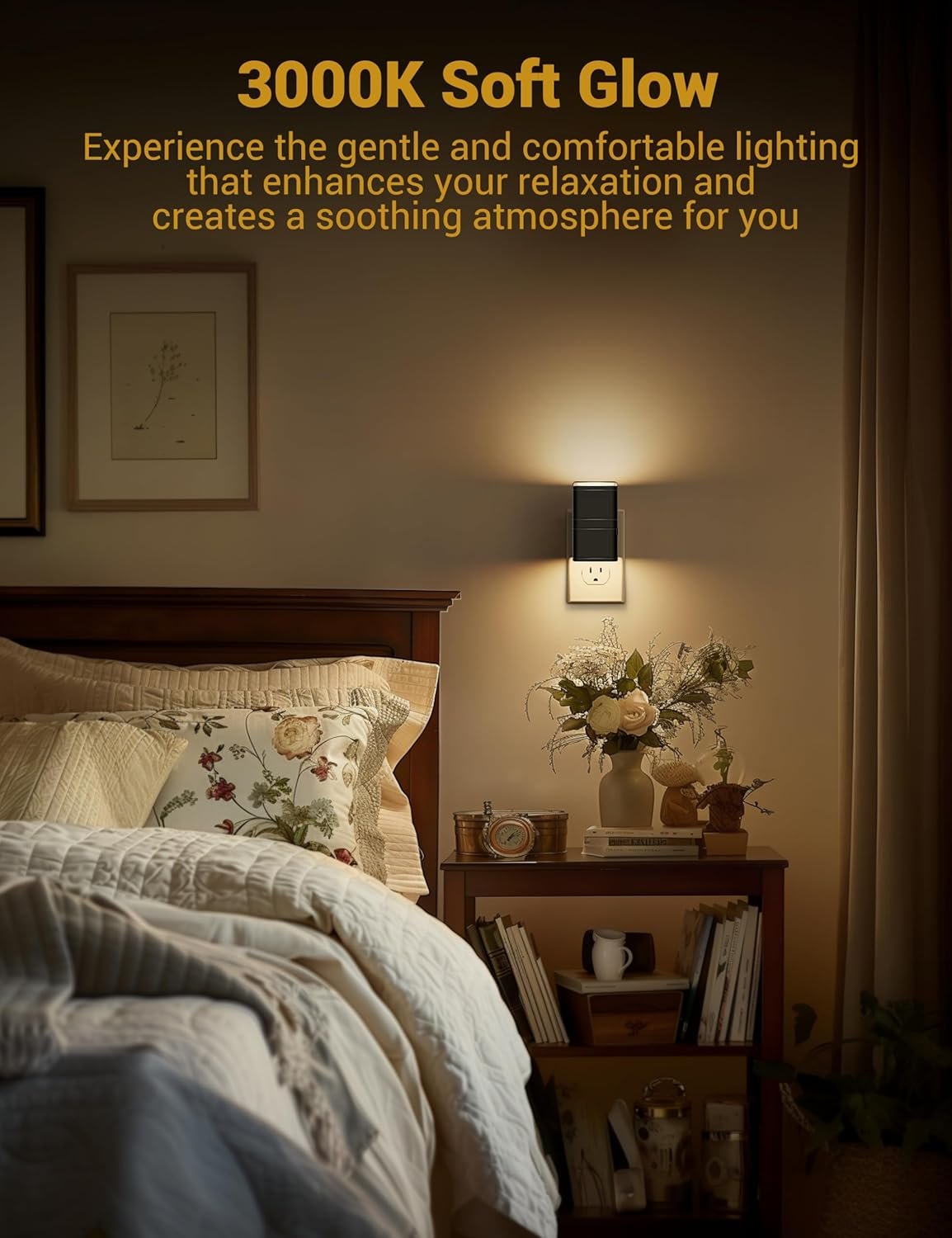 Warm Ambiance Glow: Emitting a gentle 3000K warm light, our led night light creates a cozy ambiance perfect for bedrooms, hallways, and living spaces. Enjoy soothing illumination without any harshness, enhancing relaxation and comfort
