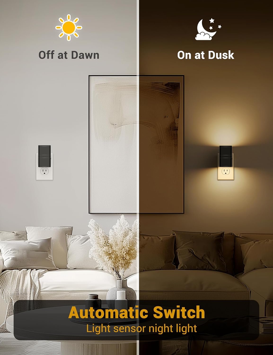 Auto Light Sensor: Equipped with a built-in light sensor, our LED night light automatically switches on in low-light environments and turns off in brighter conditions. Enjoy seamless illumination that adjusts to your surroundings, providing intuitive lighting exactly when you need it