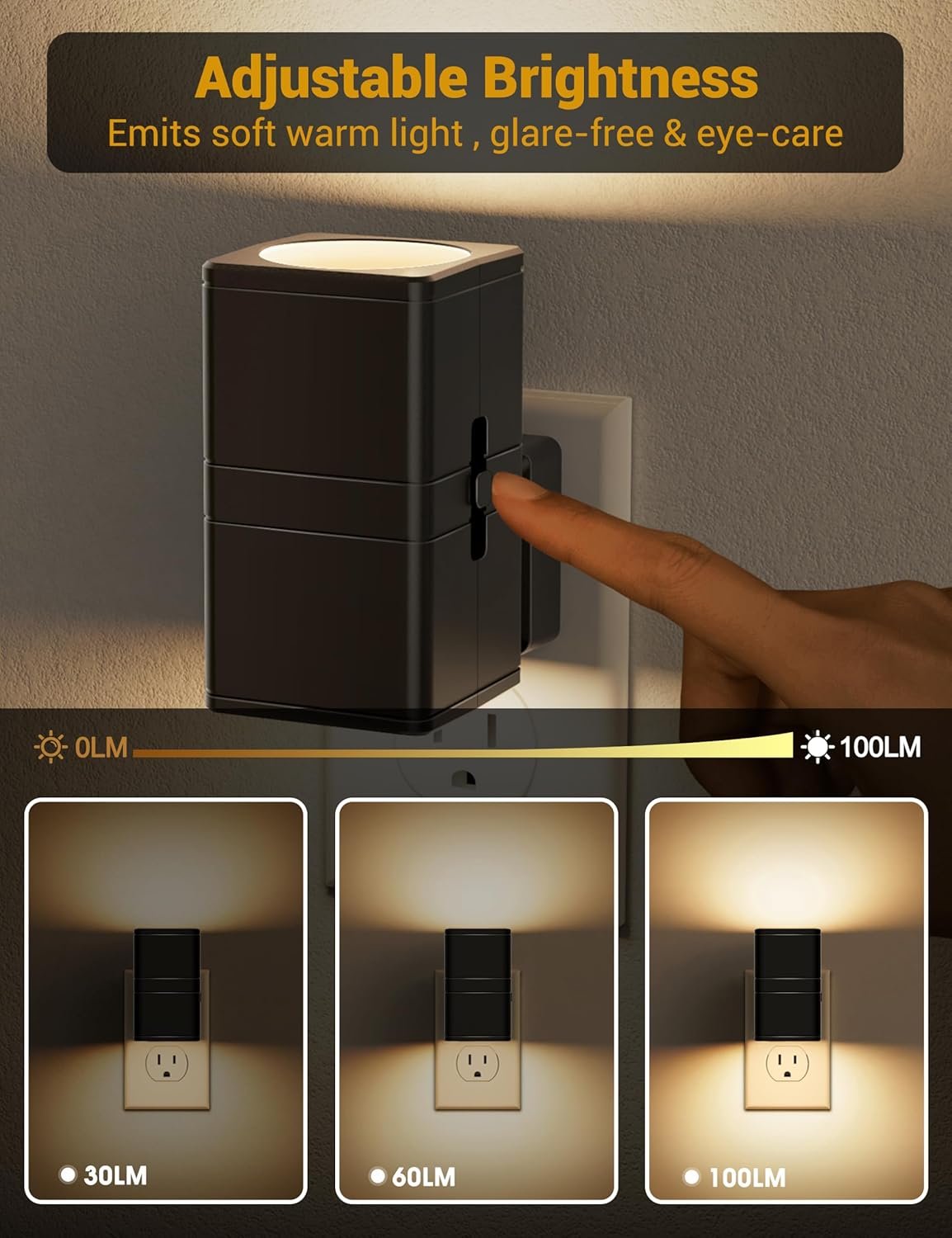 Dimmable Night Light: Tailor the brightness of our night light to your preference, ranging from 0 to 100 lumens. Enjoy personalized lighting for enhanced comfort and convenience in any setting
