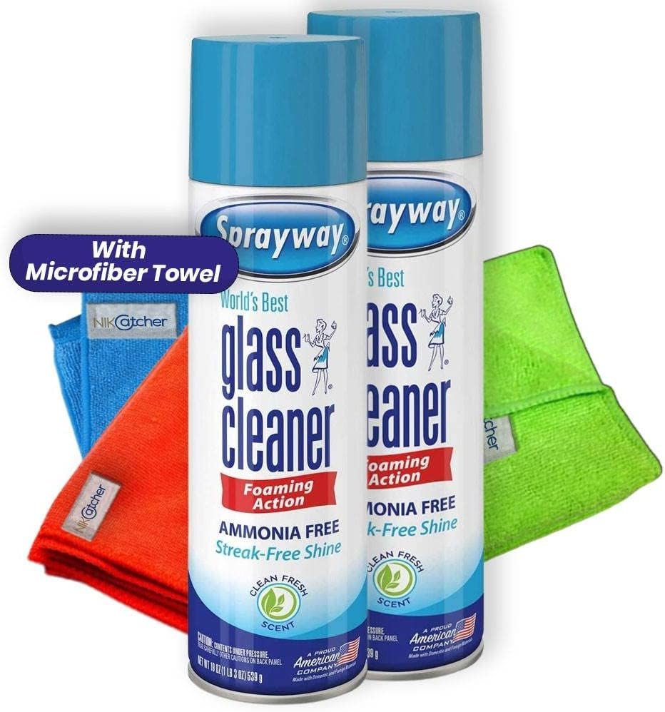 Bundle of Two Cleaning Powerhouses: Enjoy the combined benefits of Sprayway Glass Cleaner (Pack of 2) and NikCatcher Microfiber Cleaning Cloth Towels (3-Pack) for a comprehensive cleaning solution.