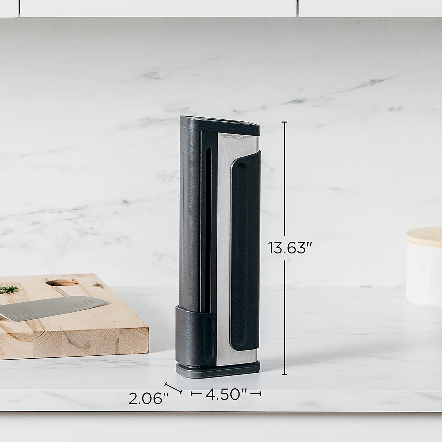 CONVENIENT STORAGE: Modern, stylish sharpener fits conveniently in your drawer or on your countertop for easy access and storage.