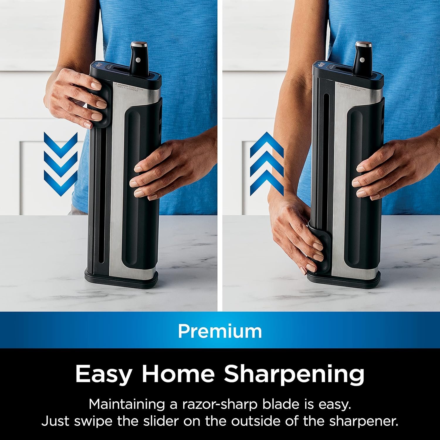 EASY HOME SHARPENING: Easy, foolproof sharpening ensures you’ll never experience the frustration of a dull knife again. All you do is swipe the slider on the outside of the sharpener.