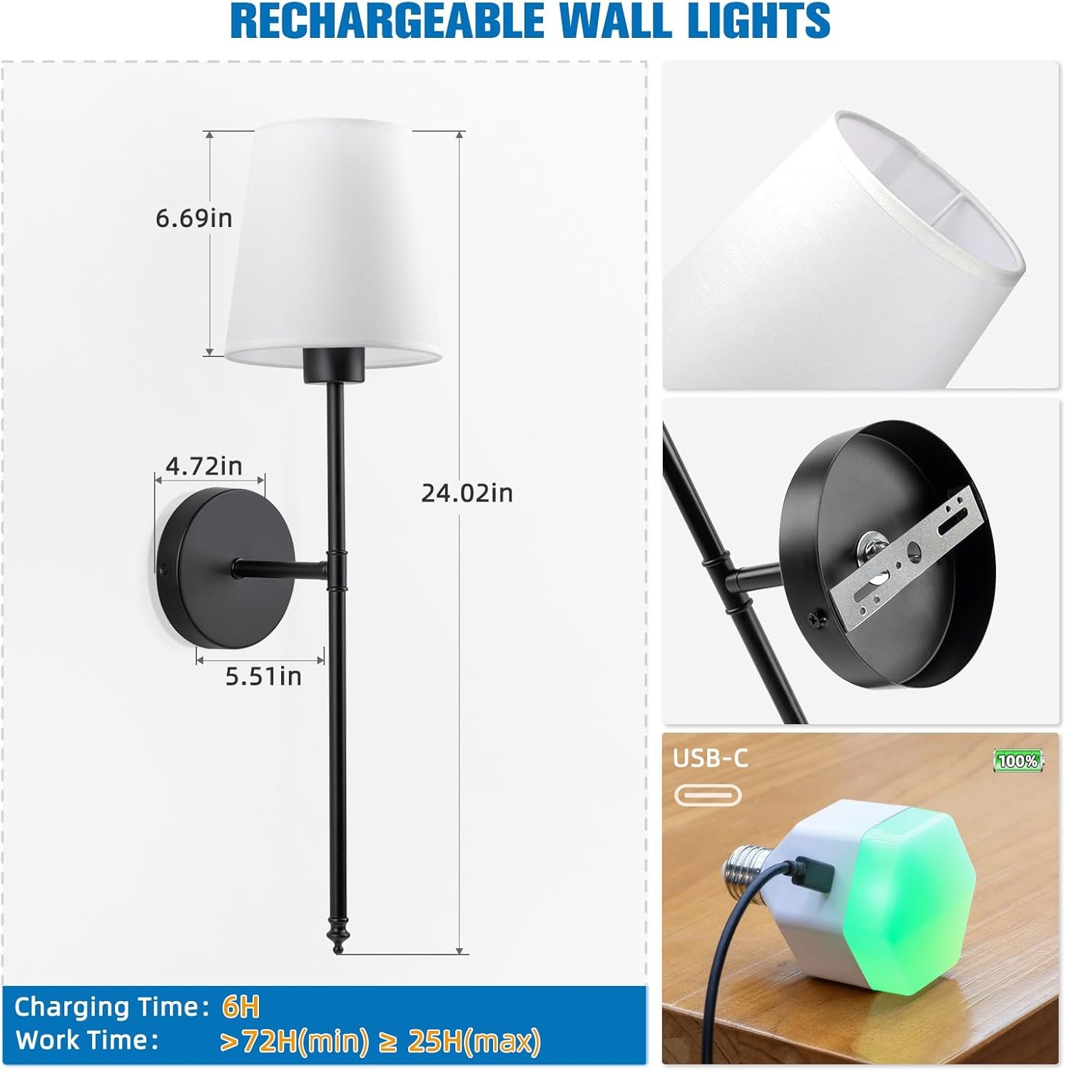 【Remote Control & Easy operations】Wireless sconces set of 2 take full control of your lighting experience with the included remote. Easily customize brightness levels and light effects from the comfort of your couch or bed. With just a press of a button, you can create the perfect ambiance for any occasion, whether it’s movie night or a cozy evening at home.