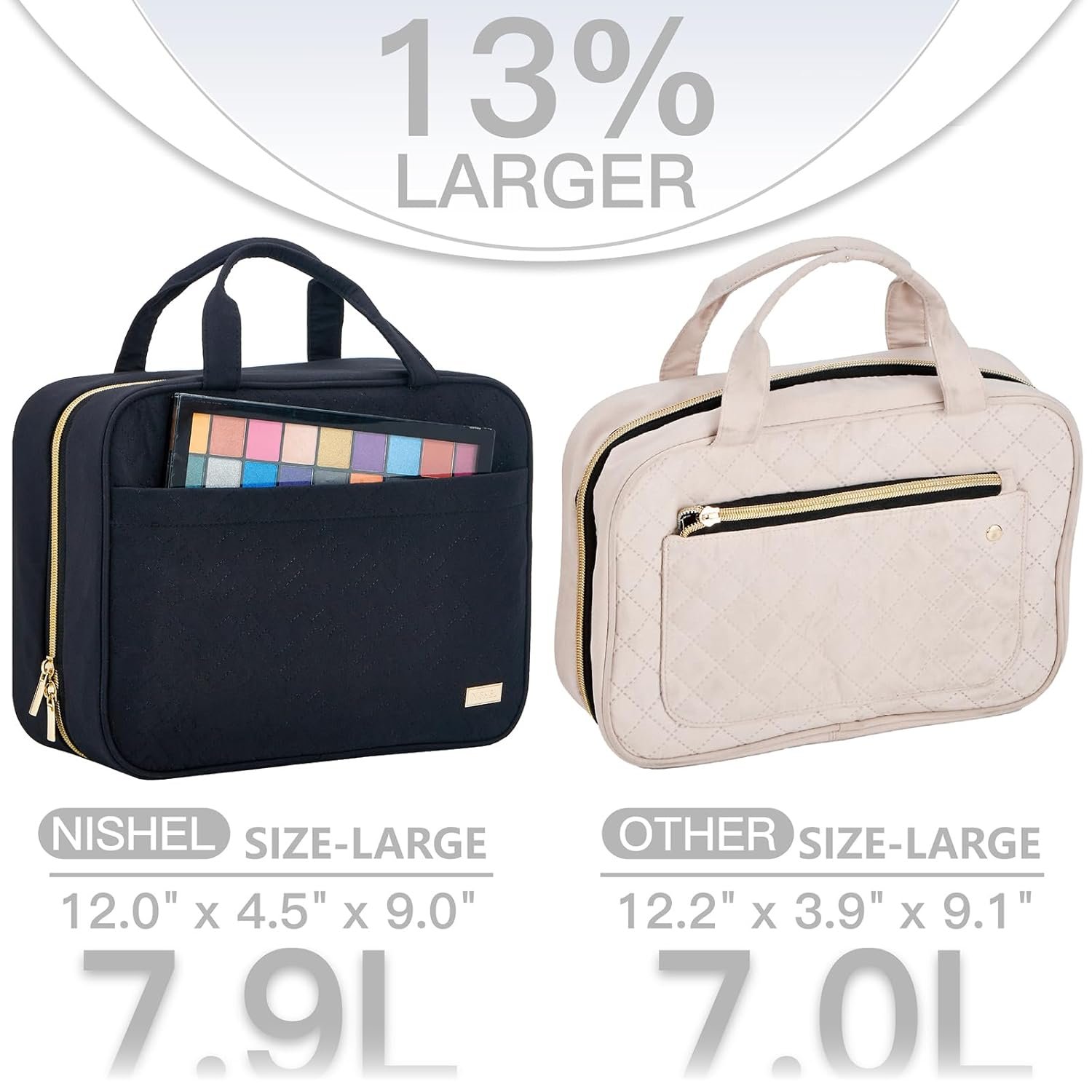 Customers find the cosmetic case has ample storage capacity with multiple compartments and pockets for organizing items. It’s the perfect size, allowing them to pack makeup, hair products, and medications in one bag without taking up much space. Many consider it the best travel bag for hair, makeup, and skincare. The case is well-made and durable, making it easy to travel with beauty and toiletry products.
