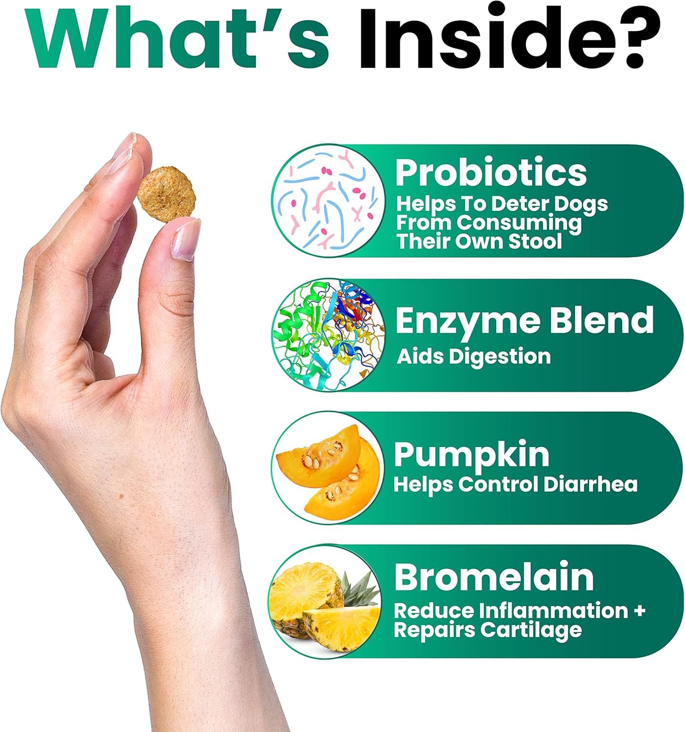Stop Stool Eating – Bad digestion is one of the main reasons behind stool eating. Our no poop eating for dogs tablets are rich in fiber and work to treat digestive trouble & provide relief to help your dog stop eating poo