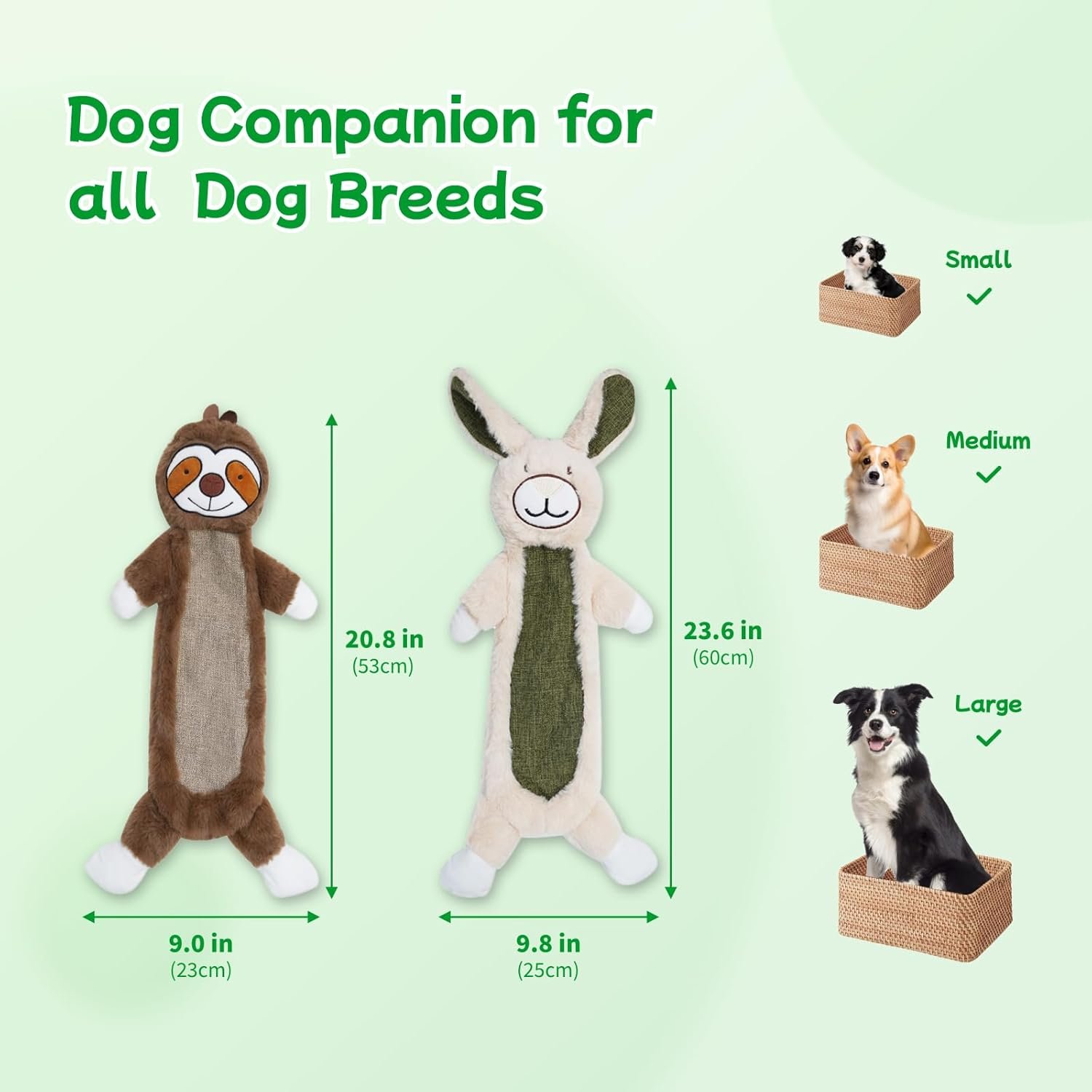 🐰🦥【Usage Tips】 Please note these toys are not suitable for aggressive chewers such as hounds. For indestructible tough chewers, we recommend close supervision as they may attempt to pull out the squeakers.