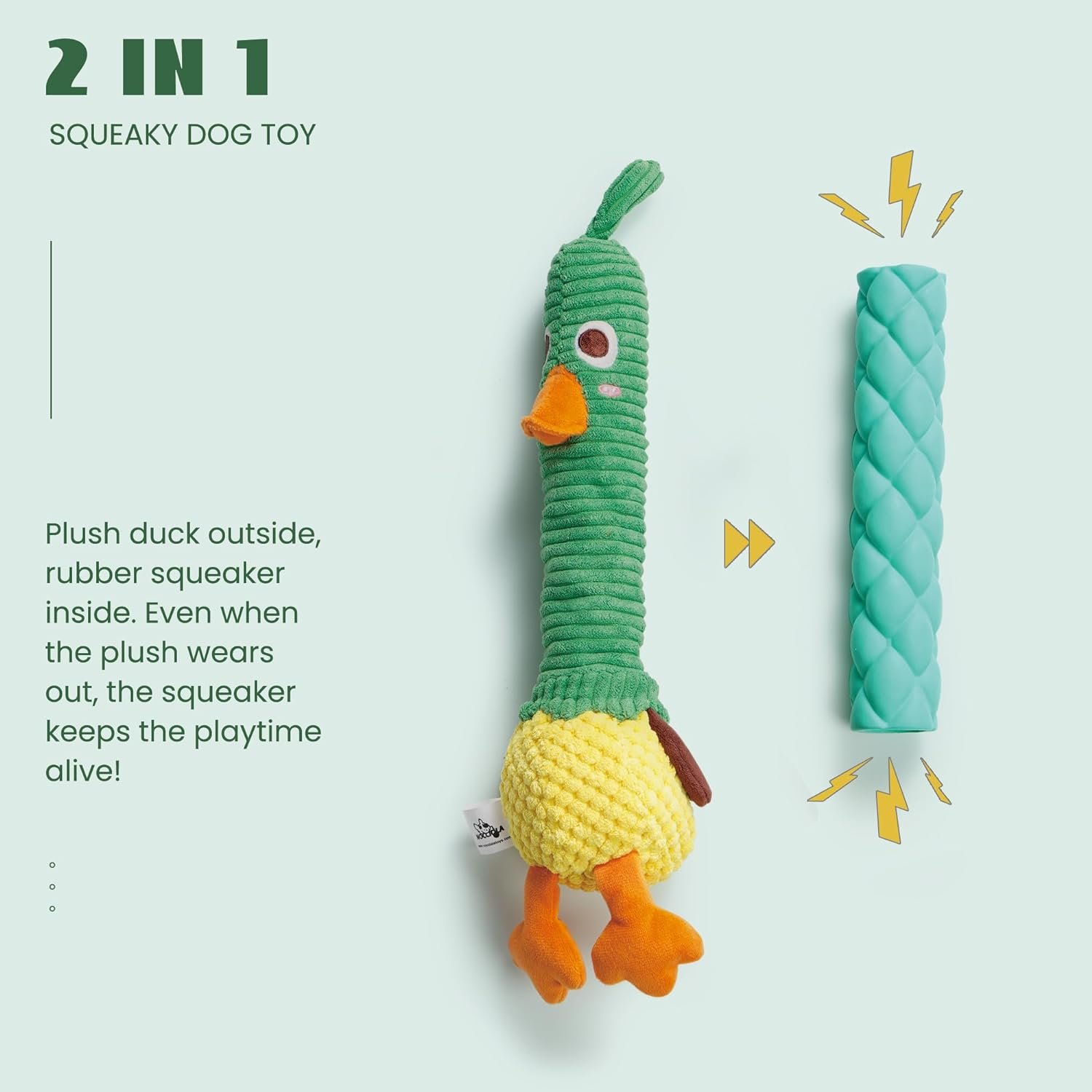 Two-in-One Delight: A plush duck on the outside, a resilient rubber squeaker on the inside. Even when the exterior is well-loved, the squeaker remains a solo playtime treat for your dog