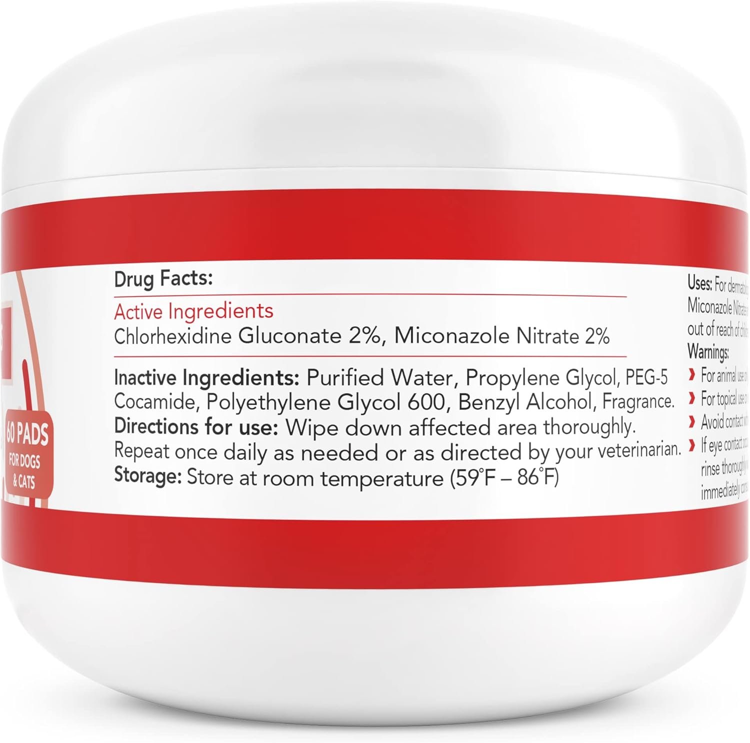 VETERINARIAN STRENGTH ACTIVE INGREDIENTS: Our medicated cat and dog wipes contain a balanced formulation of active ingredients which include 2% Chlorhexidine Gluconate and 2% Miconazole Nitrate, to provide relief for your pet.