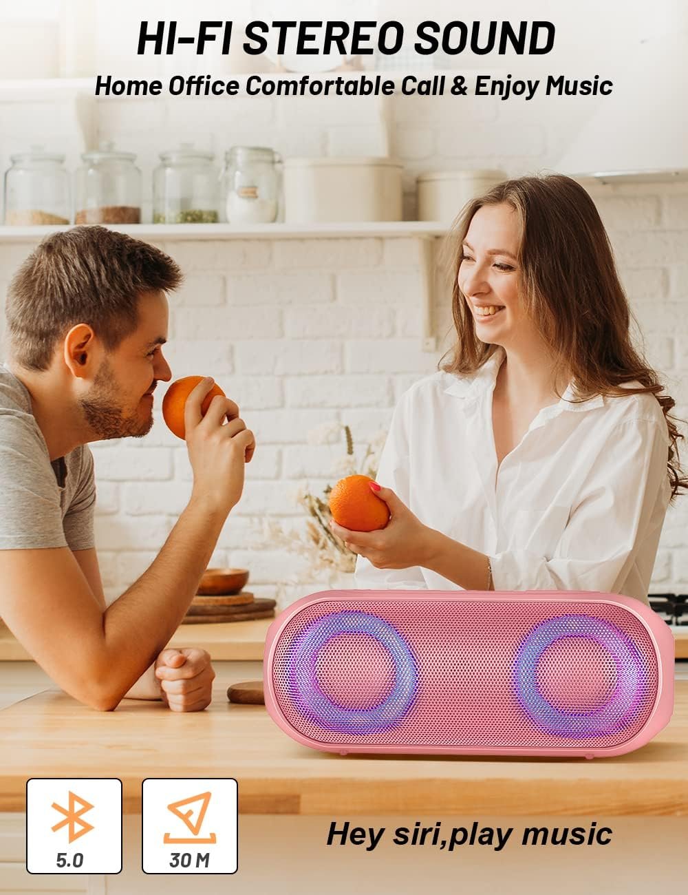 【RGB Colorful Light Show】:The standalone RGB lighting system is designed for night events with 7 light colors and 6 light modes, mixed color flashes that sync with the beat, create a pulsing light show for any song, and keep the party going with streaming music in HD.30W pink