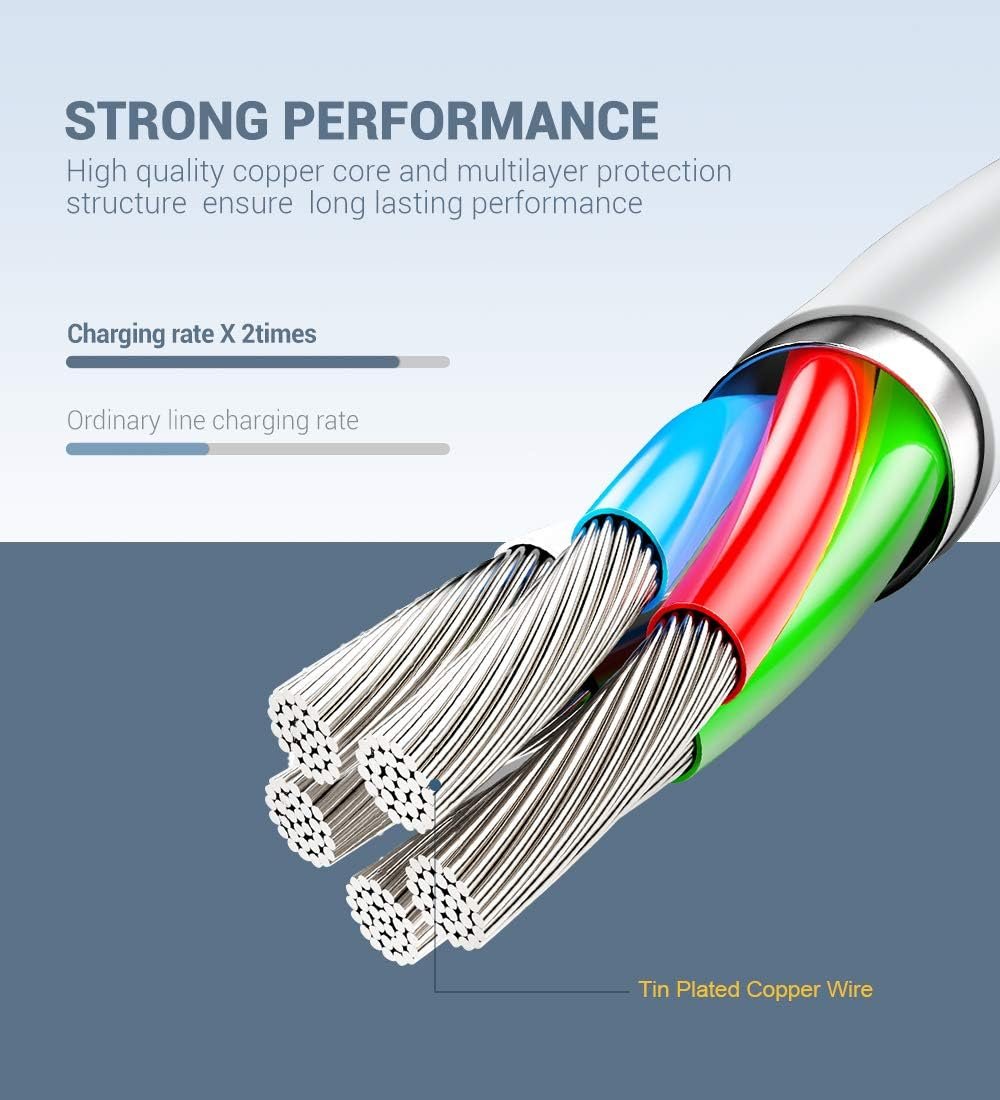 DURABLE DESIGN: With the help of PVC insulation and C89 precision welded connectors, the Novtech USB iPhone charger cable is more durable, stronger, and softer than normal others, without tangling. Lasts 12× longer than other cables and is proven to withstand over 12,000 95-degree bends in strict laboratory tests. Its seamless laser-welded connector can even withstand 15kg exterior force without breaking off. Fully meet daily connection needs and long-term use does not fade